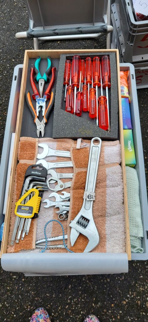 Heute ist für uns ein grosser Tag, unser Camper wird von Manfred nach Hamburg gefahren. Das heisst wir geben unser gutes Stück in fremde Obhut. Wir hoffen, dass er die Seefahrt gut übersteht. Der Tachometer zeigt 113’705 Kilometer an. Was kommt auf unserer Reise noch drauf? Wir haben die Werkzeuge und unsere Kleider gut verstaut.Wir werden unserem Gefährt erst am 4. November mit dem Flieger folgen.