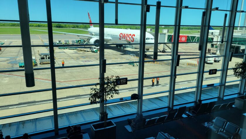 Wir sind am Flughafen Kloten und warten auf das Boarding. Manfred liest im WhatsApp, das in Montevideo schon einige Leute seit einiger Zeit auf die Autofähre warten. Das Leben im Hotel schlägt aufs Budget. Letzten Monat sei keine Fähre angekommen. Streik der Hafenarbeiter in Montevideo. Wir haben, immer im Wissen, dass sich die Fähre noch mehr verspäten könnte, ein günstiges Hotel ausgesucht.