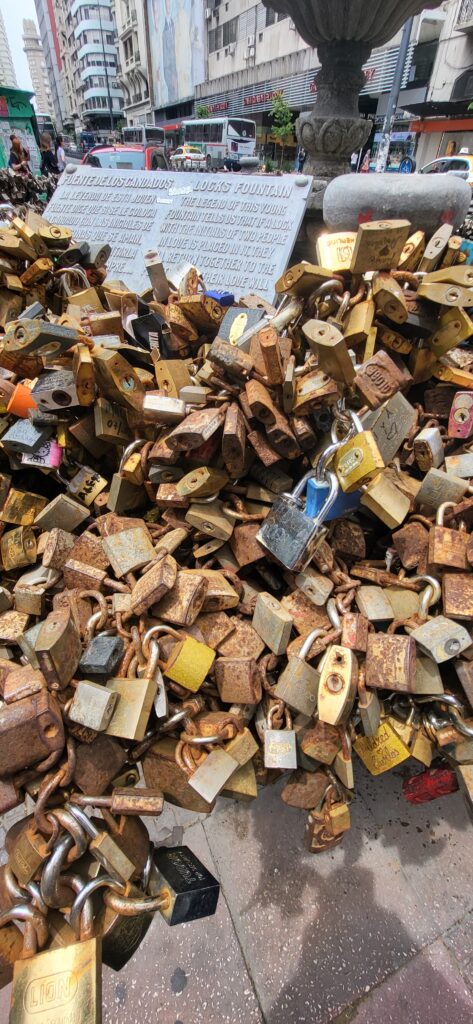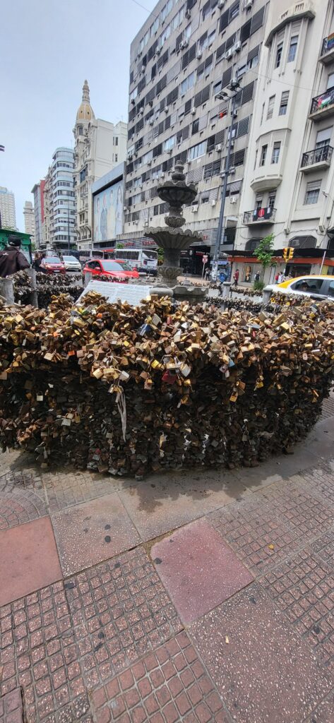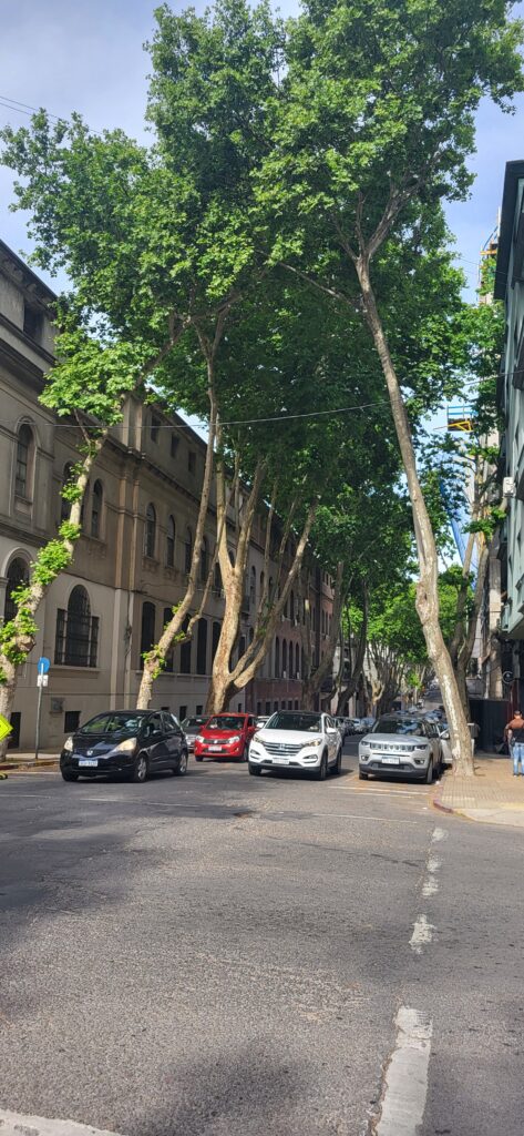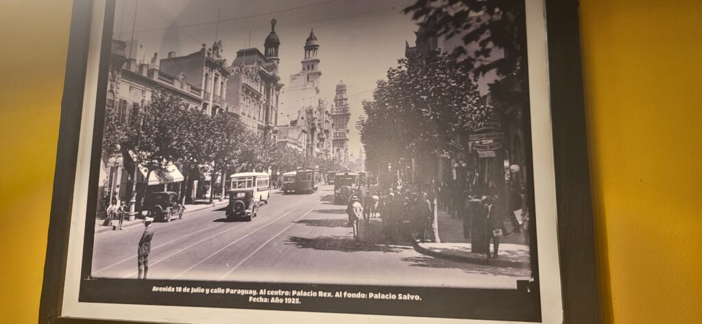 Wir flanieren über die Avenue 18 de Julio. Es ist die längste und grösste Einkaufsstrasse von Uruguay. Etwa 3.5 Millionen Einwohner hat dieses Land, wovon ca.60 % in der Hauptstadt oder Umgebung wohnen. Das Land besitzt keine Bodenschätze. Wald ist rar und daher sind Eukalyptuswälder angepflanzt. Die Landfläche ist etwa halb so gross wie Deutschland und besteht zumeist aus Pampa und Mooren. Der Fluss Uruguay ist aufgestaut und ein grosses Kraftwerk versorgt das Land mit Strom. Daneben wird auf Wind- und Solarkraft gesetzt. Unter den Landflächen von Uruguay, Nordargentinien, Paraguay und Südbrasilien erstreckt sich ein Grundwassersee von 37’000 Kubikkilometer. 2023 erlebte Uruguay eine Dürreperiode, der Grundwasserspiegel fiel und der See, der als Trinkwasser genutzt wird, war noch zu einem Zehntel voll. Landwirtschaft und Tourismus sind die grössten Einnahmequellen.