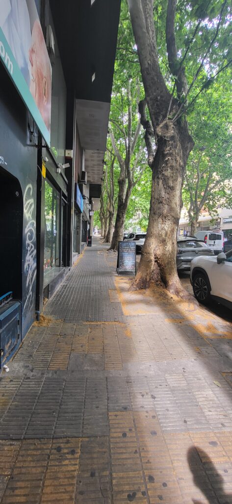 Während Manfred das Handy kauft, sitze ich in einem Café. An den Wänden hängen alte Bilder der Stadt. Über eine kleinere Strasse laufen wir zurück zum Hotel. Ich staune über die hohen Platanen entlang der Strasse. Einige wurden unten von den Ästen befreit, damit Busse fahren und die vielen elektrischen Leitungen von Wohnung zu Wohnung frei verlegt werden können. Die Wurzeln der Bäume verunstalten die Gehwege.
