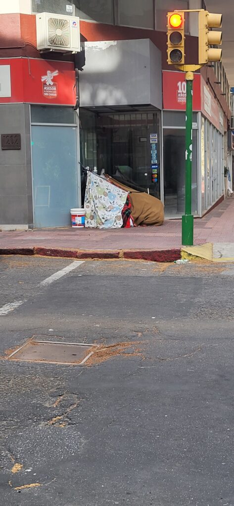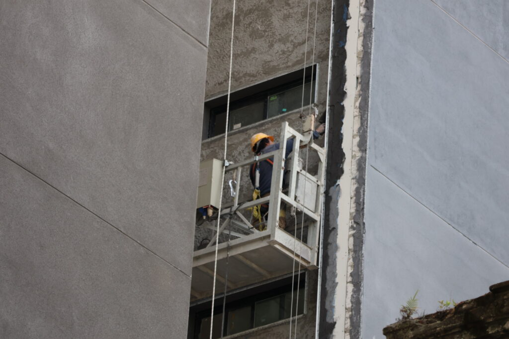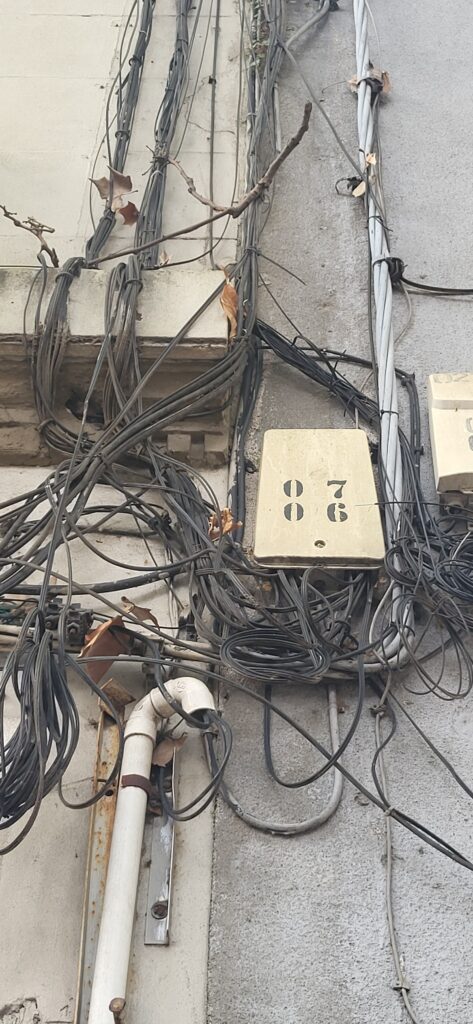 Manfred will ein neues Handy kaufen, denn sein Altes ist nicht E-SIM kompatibel. Manfred hat sie für Südamerikas Internet gekauft. Um das Geschäft zu erreichen, müssen wir die ganze, lange Strasse unter die Sohlen nehmen. Wir haben Zeit, die Häuser und Menschen zu betrachten. Einige alte Häuser wurden abgerissen oder ausgehöhlt und jetzt saniert. Meist seht kein Gerüst vor der Hausmauer und die Arbeiten werden von einer Plattform, die an einem Galgen hängt, vorgenommen. Ich sehe, wie Balkone abgeschliffen und Wände verputzt werden, während die Plattform im Wind hin und her schwankt. Die Männer sind aber gut mit Gurten gesichert.