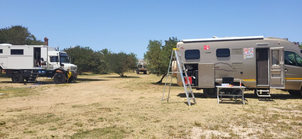 Silvia hat gesagt, sie habe viele Gasflaschen, die wir gebrauchen können. Aber Manfred meint, die gehen alle nicht. Den ganzen Morgen schaut er im Internet, das nun wieder funktioniert, wo er Gasflaschen für uns organisieren kann. Am späten Nachmittag trifft Patrik mit Rebecca ein. Sie wollen nach eineinhalb Jahren Reise wieder zurück in die Schweiz und würden ganz gerne ihre Gasflasche an uns weitergeben. Wie der Zufall halt so will!
