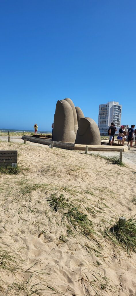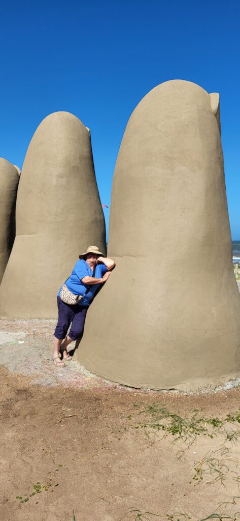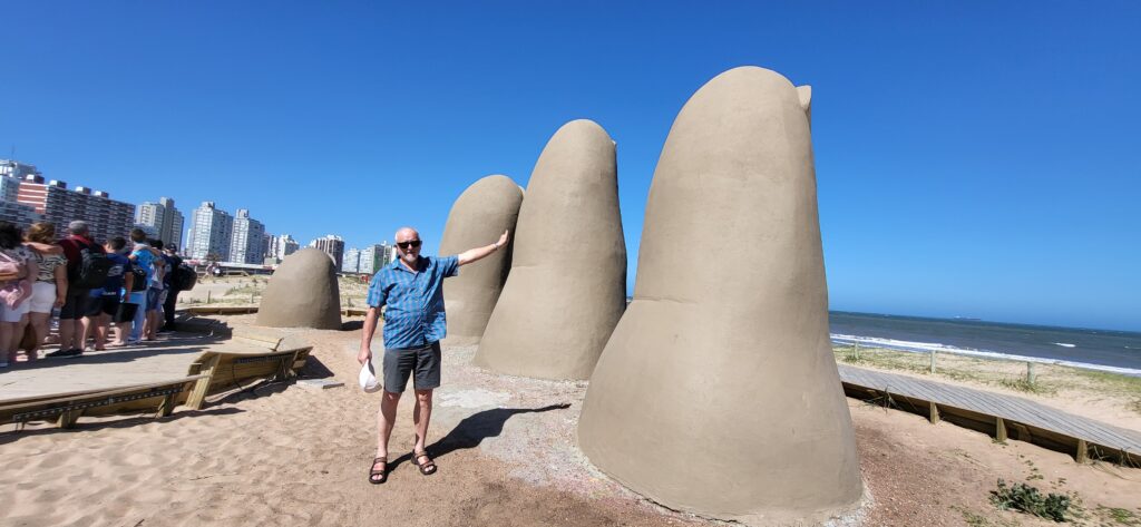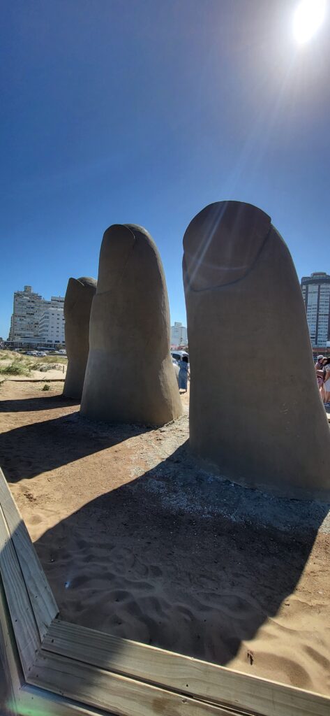 Nach dem Einkauf fahren wir noch zu den Fingern von Punta del Este. Jeder möchte sich mit den Fingern auf einem Foto verewigen. Teenager aus Brasilien und eine Schulklasse aus Uruguay brauchen am längsten, bis sie sich einigen können, wie sie sich hinstellen wollen.