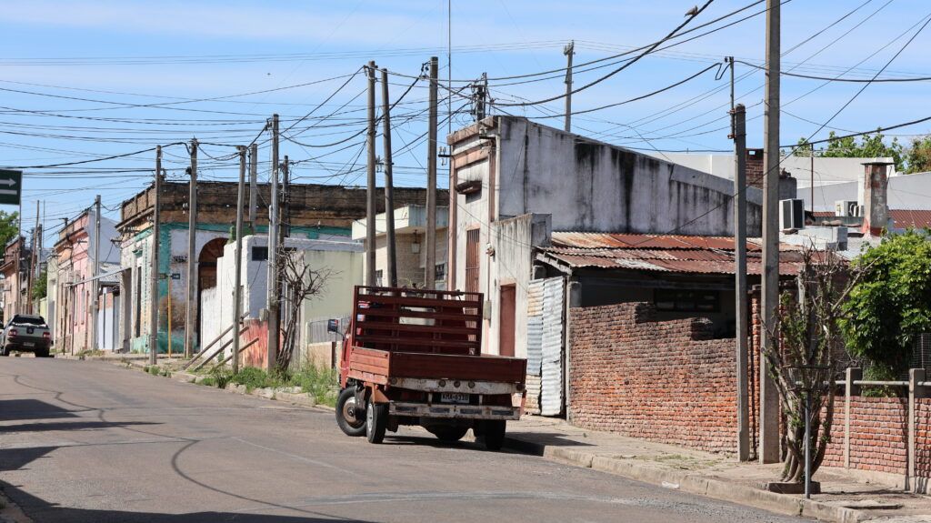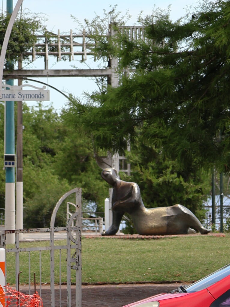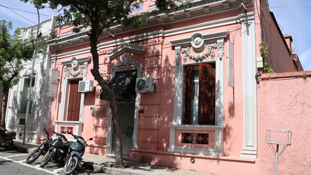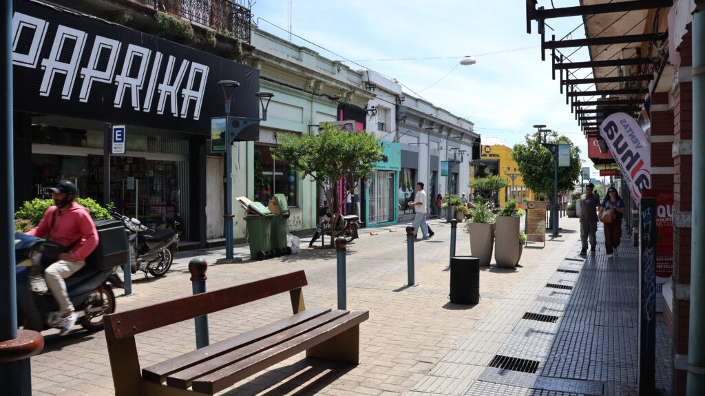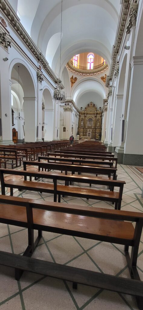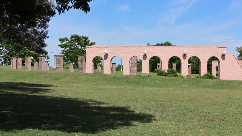 An der Rambla in Mercedes stehen viele Skulpturen. In der Mitte liegt ein breiter Grünstreifen. Wir schlendern noch durch die Altstadt und besuchen die Kirche.