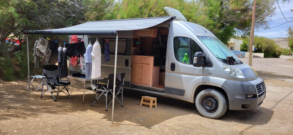 16 Kilometer nach Trelew liegt Gaiman. Hier soll es ein Café geben, wo schon Lady Di ihren 5 o’clock tea getrunken haben soll. Wir haben zuerst den Campingplatz aufgesucht. Der ist nur noch als Standplatz zu gebrauchen. Waschblock ist in desolatem Zustand. Wir laufen zum Café und werden enttäuscht. Drinnen ist gedeckt, die Türen sind aber verriegelt. Nichts mit Tee und Kuchen! Nun dann Marsch zurück zum Camper und ein Rindsfilet auf den Grill gelegt. Was schert mich Kuchen, wenn ich Rindsfilet haben kann!