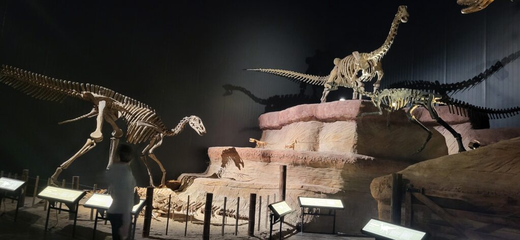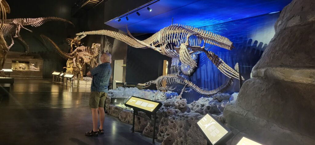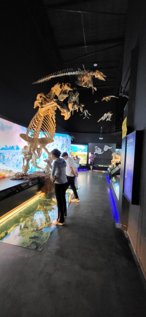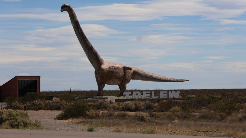 Wir treffen in Puerto Madryn ein, wo wir einkaufen. Nach weiteren 57 langweiligen Kilometern, kündigt ein Dinosaurier am Strassenrand Trelew an. Der Ort ist berühmt für Ausgrabungen und das Museum. Es ist wirklich eine tolle Ausstellung. Schade ist, dass nichts in englisch angeschrieben ist. Oder muss ich sagen, schade, dass ich nicht spanisch spreche? Ich habe gar nicht gewusst, dass es so viele verschiedene Saurier zu Wasser und zu Land gab. Man kann die Ausstellung auch von oben bewundern und eine Werkstatt, die zur Restaurierung gebraucht wird, ansehen. Leider gibt es auch kein Buch über all die Ausgrabungen deren Geschichten.
