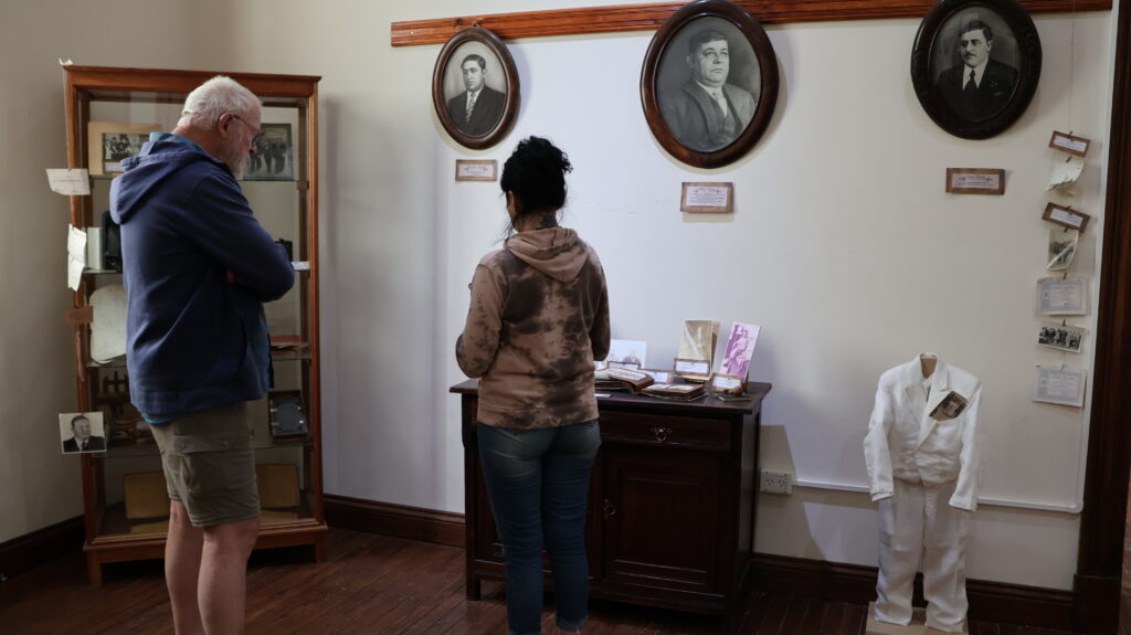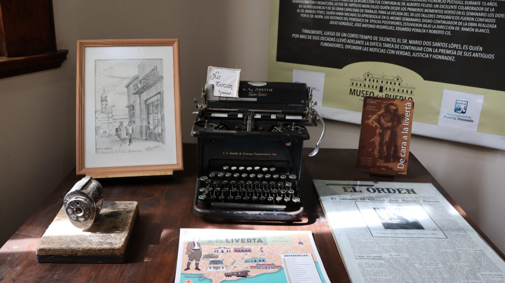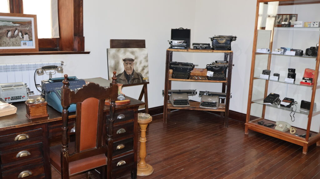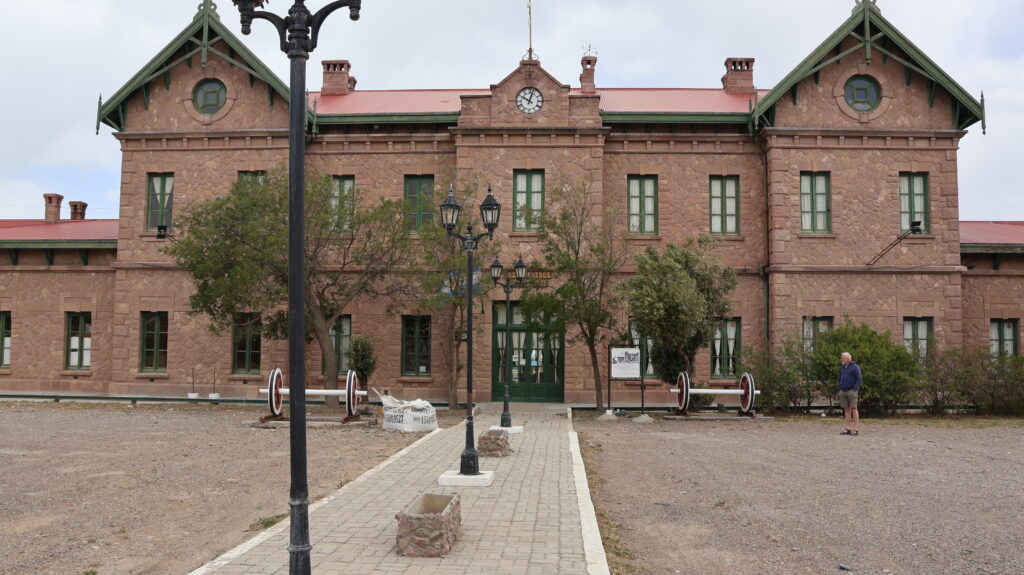 Wir besuchen den alten, schon lange still gelegten Bahnhof. Er ist restauriert worden und beherbergt 2 Museen. Das eine hat nur am Wochenende geöffnet und das andere öffnet gerade, als wir ankommen. Es erzählt die alte Geschichte der Ortschaft. Werkzeuge, Alltagsgegenstände und Waffen der Ureinwohner sind ausgestellt. Dazu Gegenstände der ersten Einwanderer. Die Geschichte ist interessant. Auch Charles Darwin war hier. Der Streit um die Falkland Inseln hat hier begonnen. 1615 lief der holländische Kapitän Willhelm Schuiten den Hafen von Puerto Deseado an. Eines seiner Schiffe, die Horn verbrannte dabei. Nach diesem Schiff benannte er die Südspitze von Feuerland, Kap Horn.
