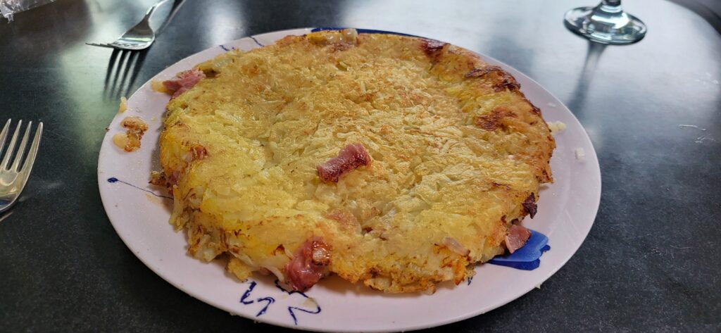 Da wir in etwa 2 Tagen die Grenze zu Chile passieren, müssen wir alles Frische, wie Obst, Gemüse und Fleisch aufessen. Sogar Reis darf nicht über die Grenze, er könnte in Chile keimen und sie wollen in ihrem Land nichts Fremdes!!! Weder Pflanzen noch Tiere oder Krankheiten von anderen Ländern sind erwünscht. Darum gibt es heute zum Abendessen Rösti mit Schinken aus einem Teller. Man will ja nicht so viel abwaschen!