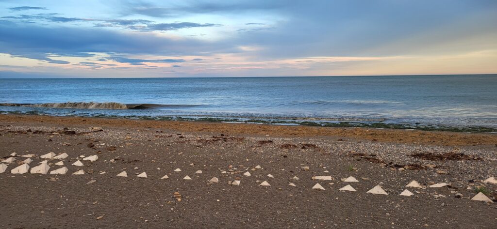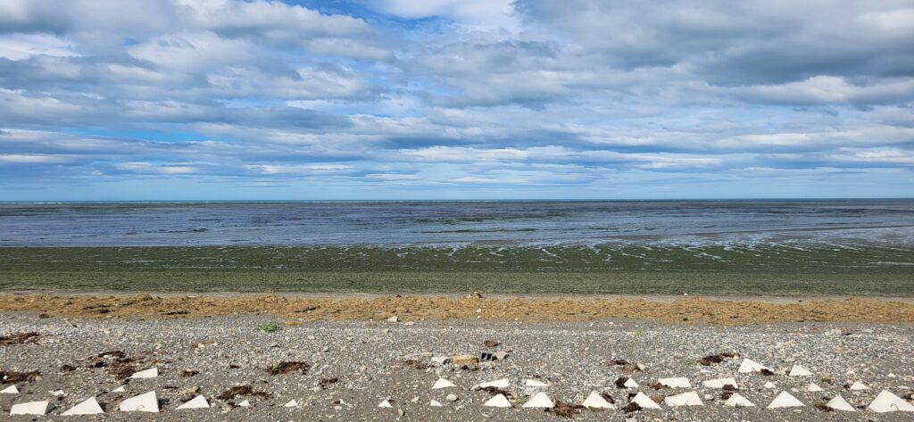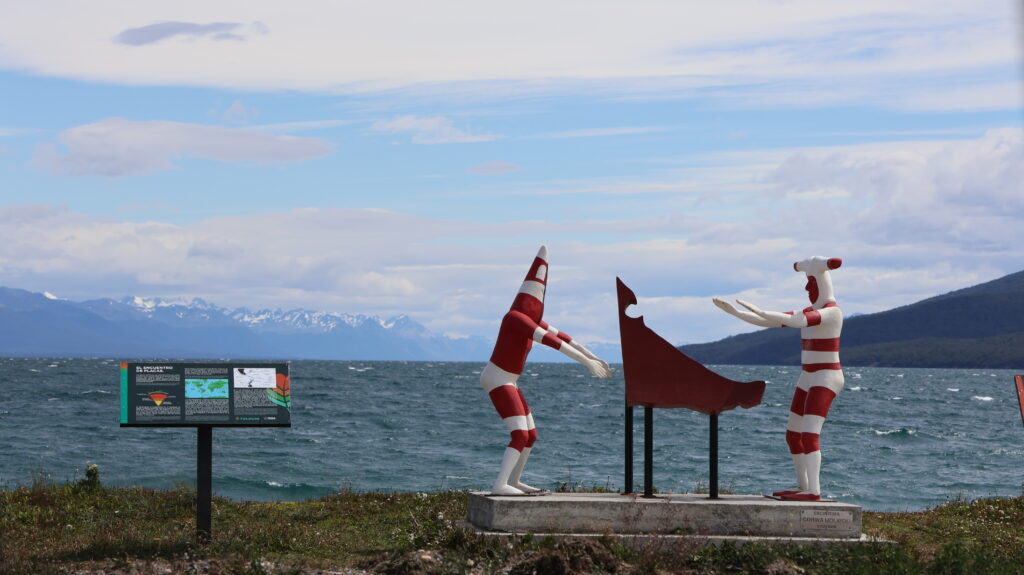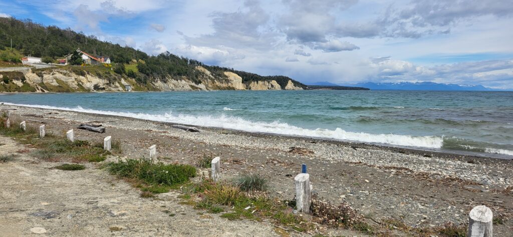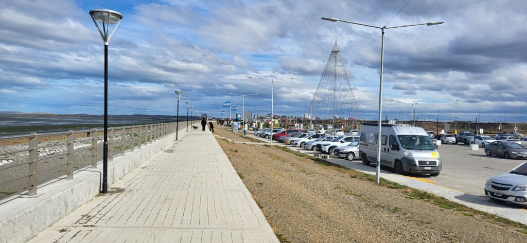 In Tolhuin, wo wir campiert haben, als wir südlich fuhren, sind wir an den Lago Fagnano gefahren, um zu essen. Es ist schon frappant, wie der Wald und die Berge den Wind im Zaun hielten. Ab Tolhuin bläst er wieder ungehindert. In Rio Grande fahren wir an den Strand und stehen über Nacht auf einem Parkplatz. Als wir ankamen, lag das Wasser des Meeres noch weit draussen. Nun ist es schon beinahe bei uns angekommen. Auf dem Spielplatz steht ein Weihnachtsbaum aus Lichtern. Obwohl nun schon der 4. Advent ist und es auch so kalt ist wie in der Schweiz, fühle ich keine Weihnachtsstimmung. Heute ist auch noch der längste Tag auf dieser Seite der Erdkugel.