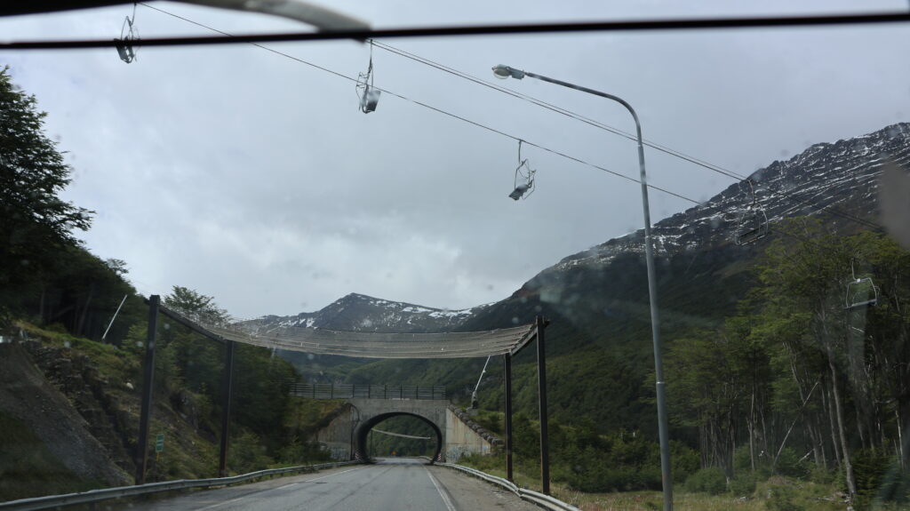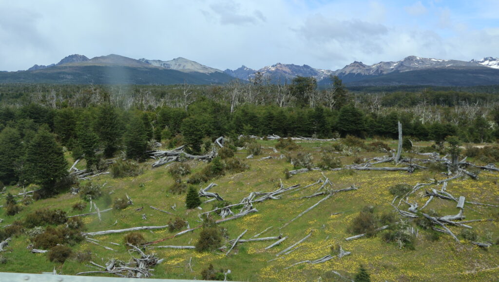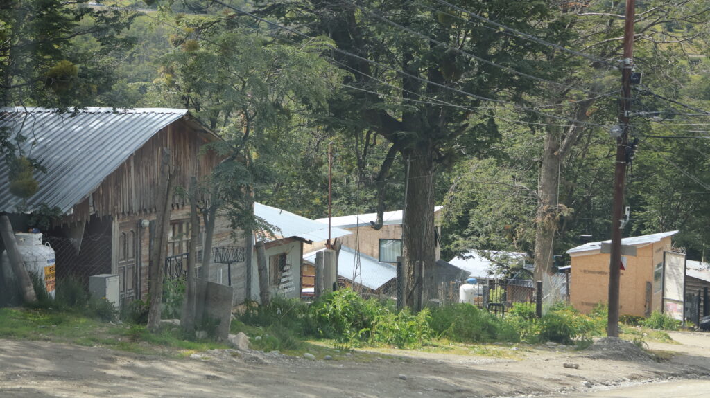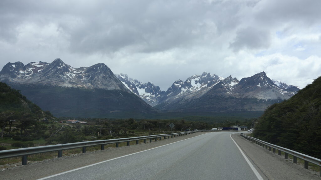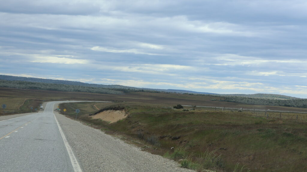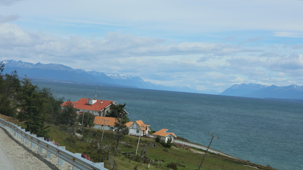Es scheint so, als würde hier, ohne zu fragen, überall wo es Platz hat oder es einem gefällt eine Hütte aufgestellt. Manchmal sieht es richtig grässlich aus. Dann wieder gibt es schöne Feriensiedlungen. Wir verabschieden uns vom Hafen und den Ausläufern der Anden. Denn bald wird uns die Ebene und der Wind wieder langweilen. Gerade als wir Ushuaia verlassen wollen, steht eine Polizeikontrolle da. Man muss blasen! Eine Polizistin trägt ein Gerät, das aussieht, wie wenn man beim Arzt das Lungenvolumen messen muss. Also mit den Lippen ein grösseres Röhrchen umschliessen und kräftig ausatmen. Das macht sie vor und gibt dann das Gerät ins Auto, durch das Fenster. Der Autofahrer kann weiterfahren. Sie hält das Gerät mit der Hand, dort wo der Autofahrer hineingeblasen hat. Der nächste kommt dran und am Gerät wird nichts gewechselt!!! Manfred sieht mich ungläubig an. Wir sind dran, werden aber durchgewunken. Manfred schnauft erleichtert aus und sagt: «Da brauchst du aber um zu desinfizieren mindestens 2 Schnaps!»