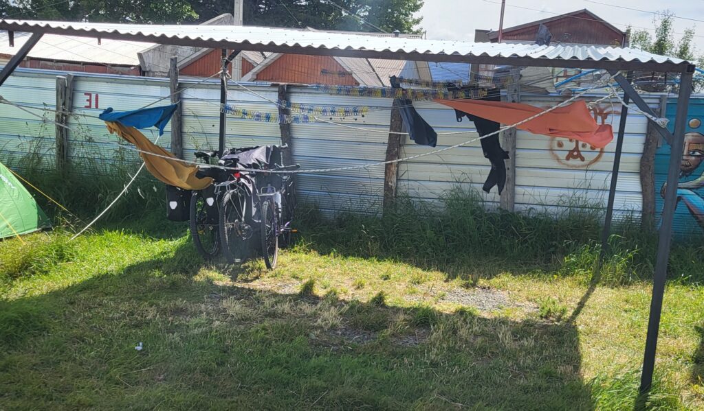 Danach müssen wir noch unsere Wäsche abnehmen. Es knallt kurz und dann ist es still. Im ersten Moment denke ich, der Wind. Aber dann kommt es mir doch komisch vor. Ich blicke nach draussen und da kaut ein Hund frisch fröhlich auf unserem elektrischen Kabel herum. Er hat es aus der Steckdose am Camper herausgerissen und dabei den Deckel beschädigt. Manfred hat den Hund weggejagt und zum Glück hat er am Kabel noch keinen Schaden verursacht. Am Abend bekommen wir noch ein Abendrot zu sehen.