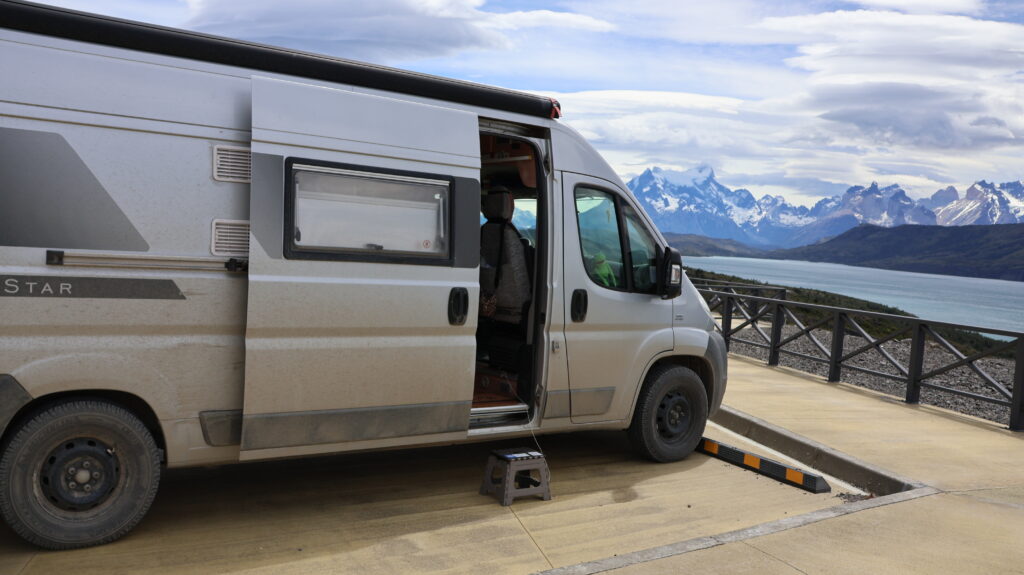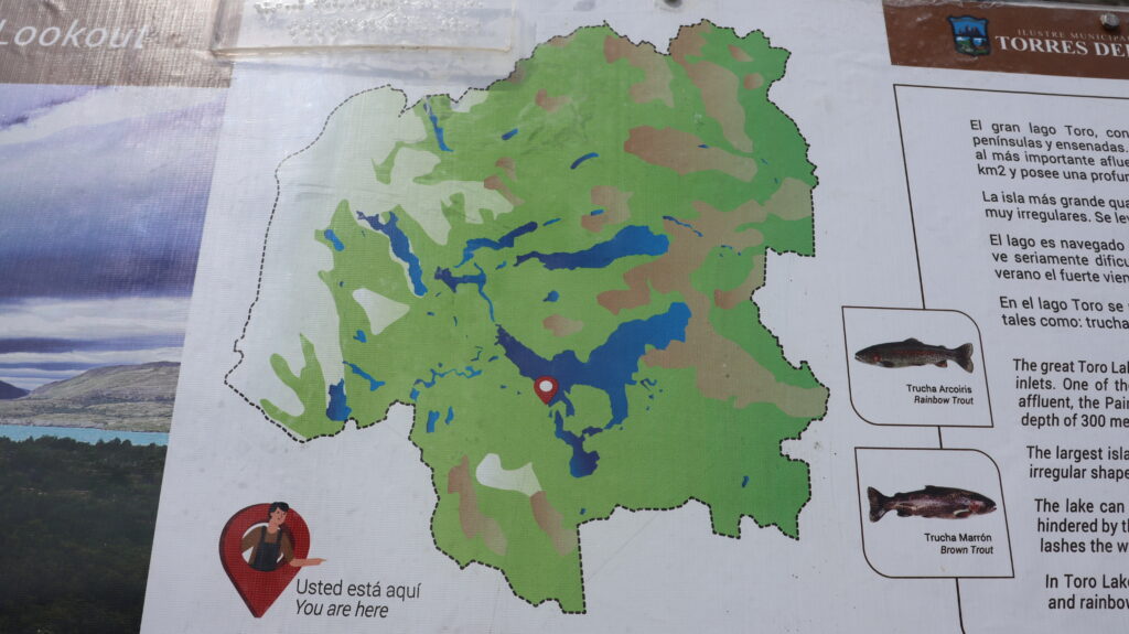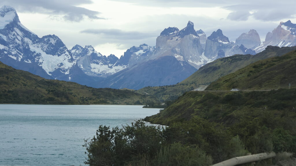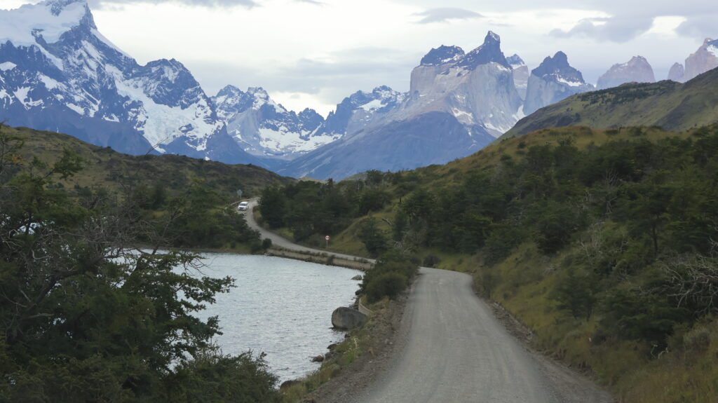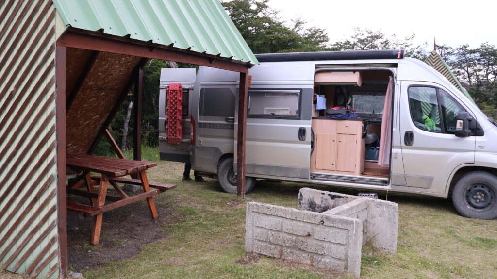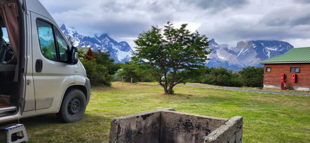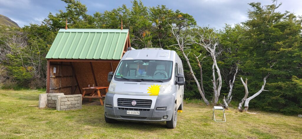 Ab dem Lago del Toro begleitet uns die Aussicht auf die Türme und die anderen Berge ringsherum. Am Parkeingang muss man eine Gebühr bezahlen. Bis zum Campingplatz am Lago Pohoe geht es dann noch ein Weilchen. Der Platz ist teuer, aber wunderbar eingerichtet. Bei jedem Platz gibt es einen Unterstand mit Bank und Tisch. In der Toilette gibt es Papier, auch zum Abtrocknen der Hände ist solches vorhanden. Ganz toll, zum Abwaschen fliesst heisses Wasser! Wir stehen mit dem Camper vor den Türmen. Ein grossartiger Platz!