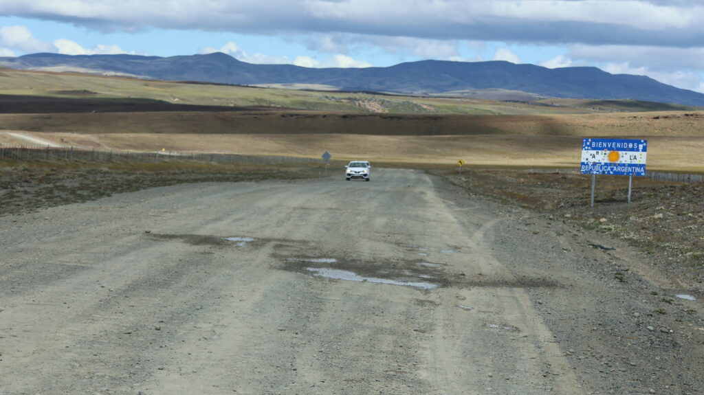 Wir erreichen die Grenze zu Argentinien. In Chile geht es ruckzuck und wir können weiterfahren. Dieses Mal habe ich nichts entsorgt und ich lasse es wegen einer Banane, die ich angeben werde, darauf ankommen. Auf der Grenze im Niemandsland, wechselt die gute chilenische Strasse um, in eine Schotterpiste. Der argentinische Zoll ist ein kleines Häuschen. Auch hier geht alles sehr schnell von statten. Nach etwelchen Sachen, die man verzollen sollte, fragt niemand.