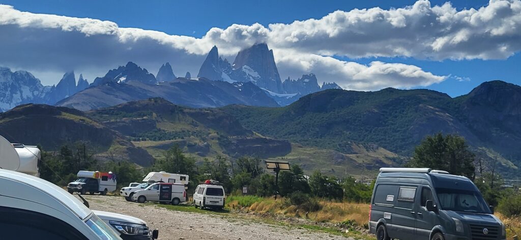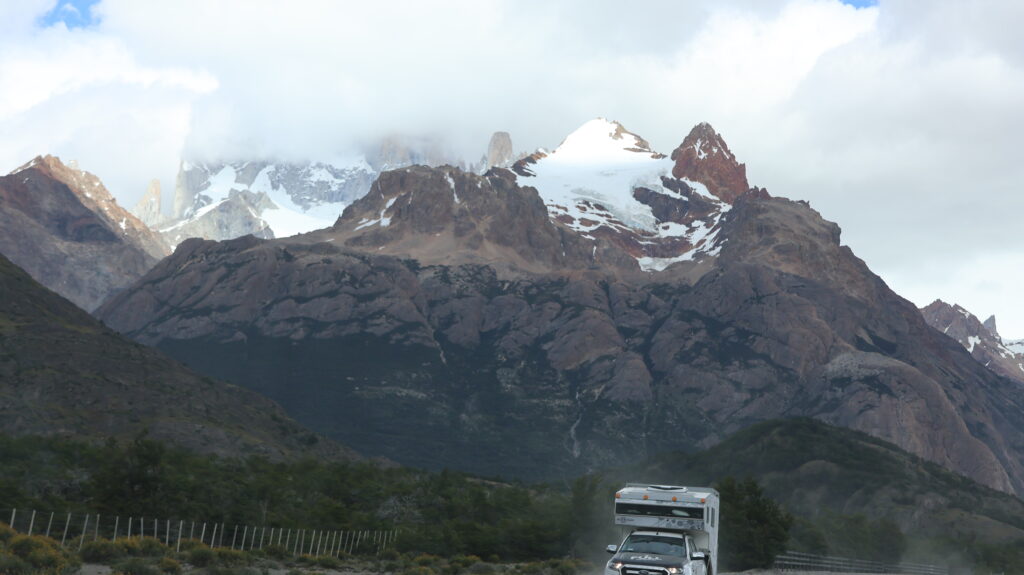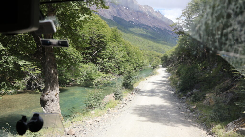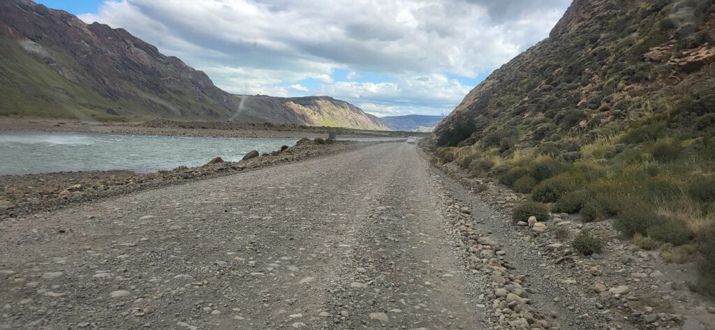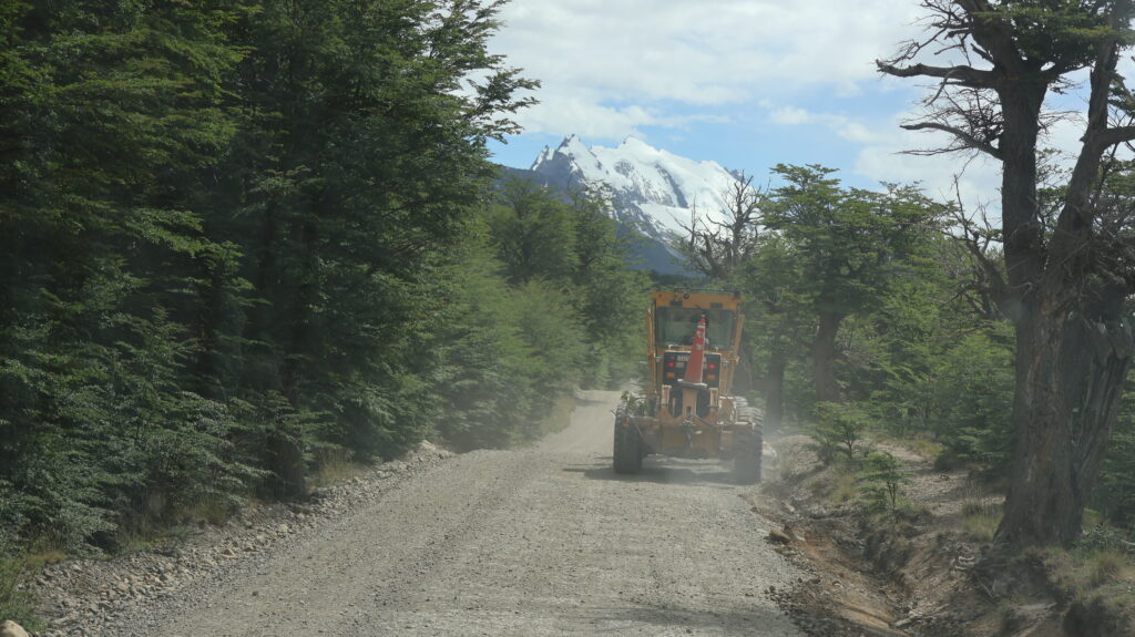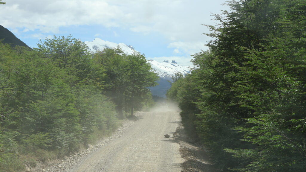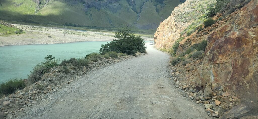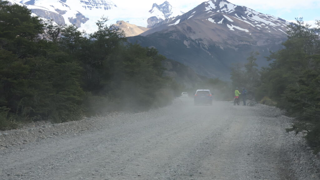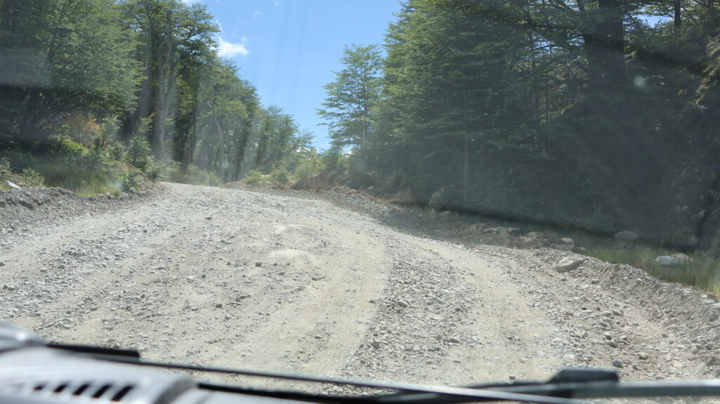 Wie vom Rancher empfohlen fahren wir zum Lago del Desierto. Aber zuerst suchen wir noch einen Bäcker auf, der gutes Brot haben soll. Er hat sein Geschäft hoch über El Chalten. Die Strasse zum See ist Schotterpiste. Manfred lässt Luft von den Reifen ab. Ist aber immer noch nicht zufrieden mit der Federung.