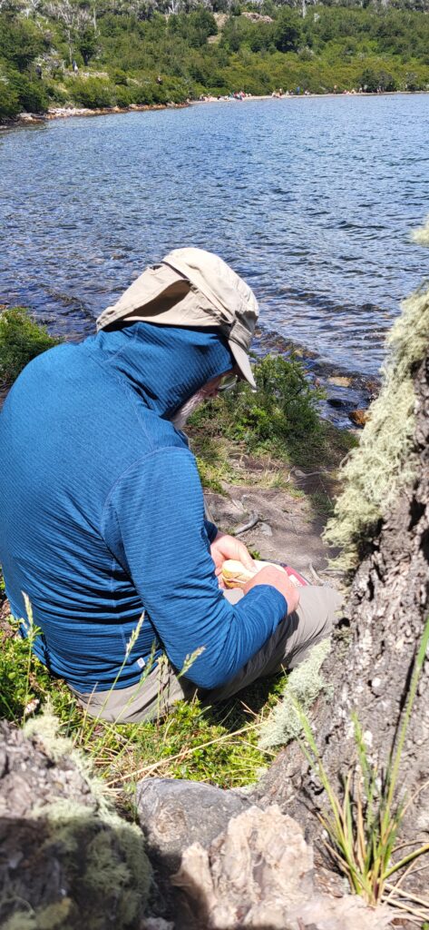 Vor dem kleinen Billetthäuschen sammeln sich schon viele Wanderer an. Für die Wanderung muss man Eintritt in den Gletscher NP bezahlen. Da wir schon mal beim Perito Moreno bezahlt und das Billett aufbehalten haben, macht es für uns nur den halben Preis.