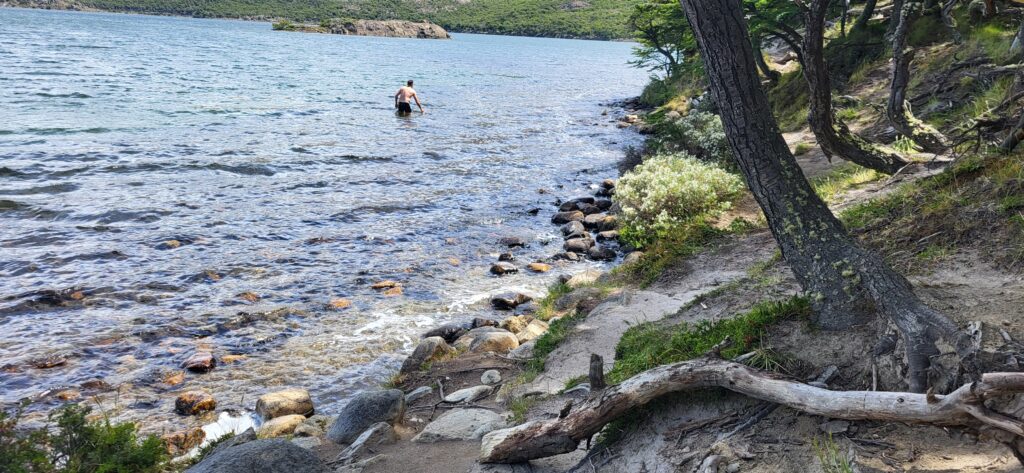 An der Lagune angekommen, staune ich über die Mutigen, die sich in den kalten See stürzen. Wir essen unsere Sandwich und schauen den Schwimmern zu. Sie halten es meist nicht lange im Wasser aus. Nach ein paar Fotoaufnahmen nehmen wir den Abstieg unter die Füsse. Für mich ist hinunter laufen viel schwieriger als hinauf. Aber ich schaffe es gut nach unten. Der Wind hat schon an der Lagune wieder heftig geblasen. Auch an unserem Stellplatz angekommen, müssen wir den Wind in Kauf nehmen. Manfred wird es zu bunt und räumt die Stühle in den Camper. Dann hat der Wind aufgehört!