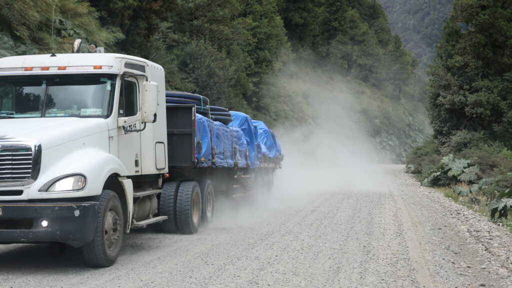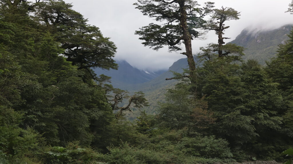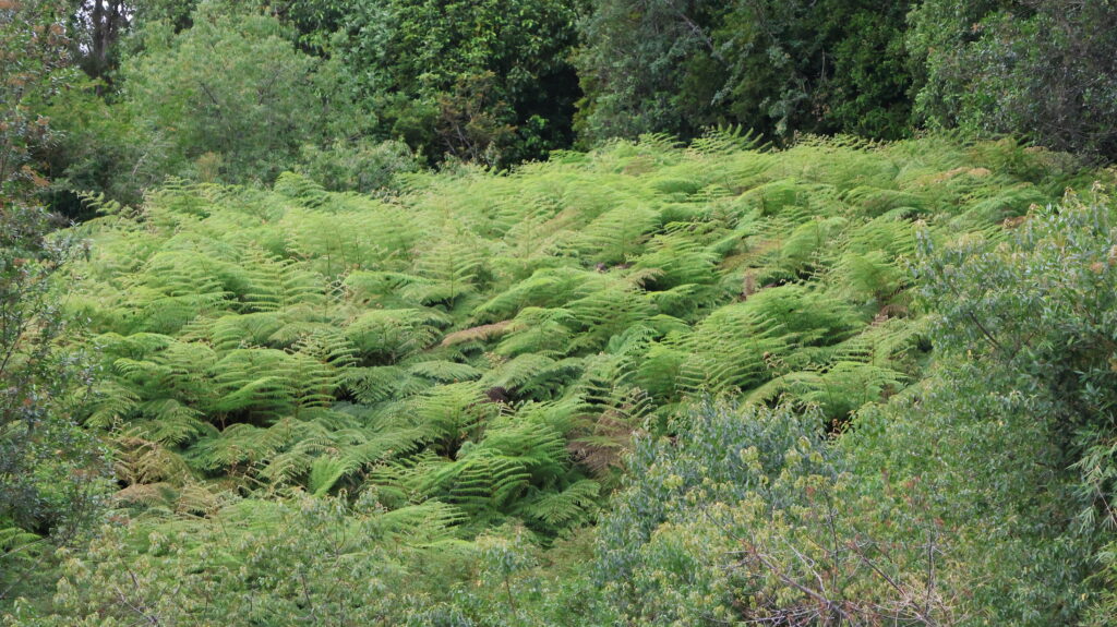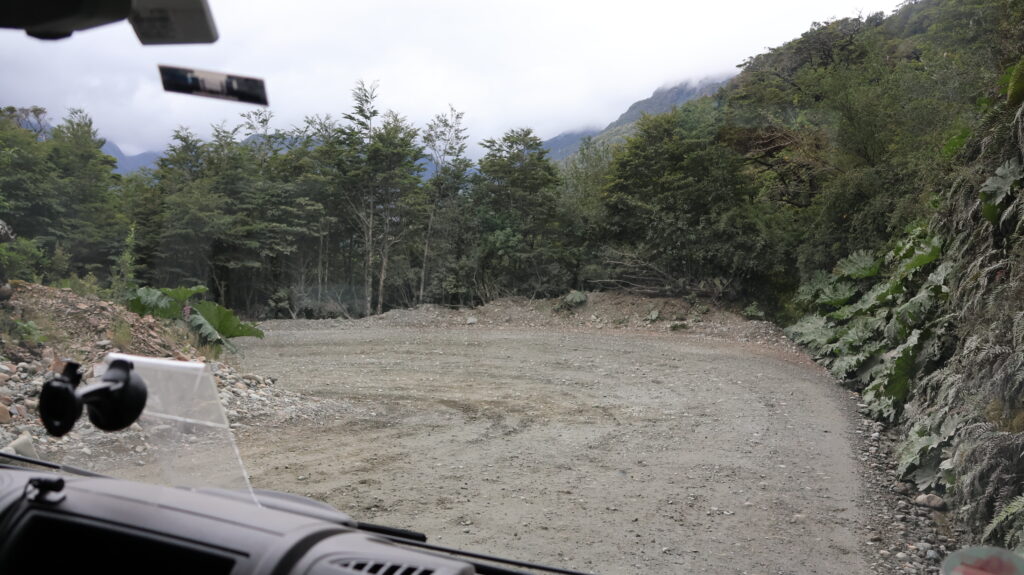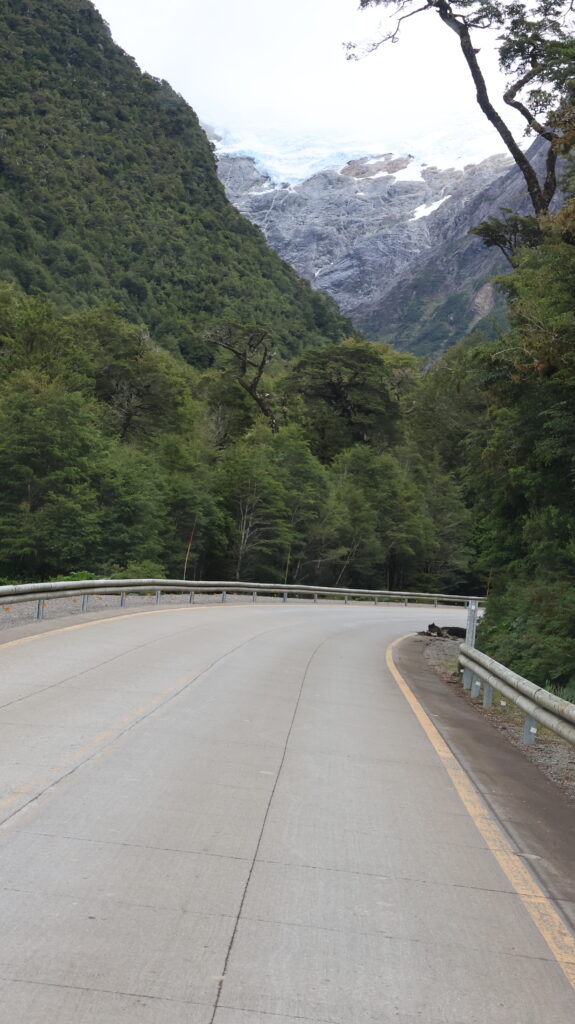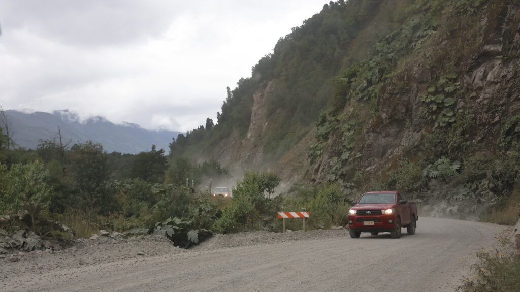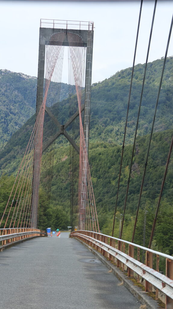 Bald nach Cisnes fängt der Pass an und das ist wieder Schotterstrasse. Allerdings ist sie nur in den Kurven schlecht. Alles, was Räder hat, fährt auf dieser Strasse, weil sie besonders ist. Sie führt durch Urwald. Am Strassenrand kommen nun zu Riesenrhabarber und Fingerhut noch verschiedener Farn und mannshohe Fuchsien dazu. Es heisst schauen und geniessen.