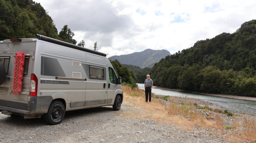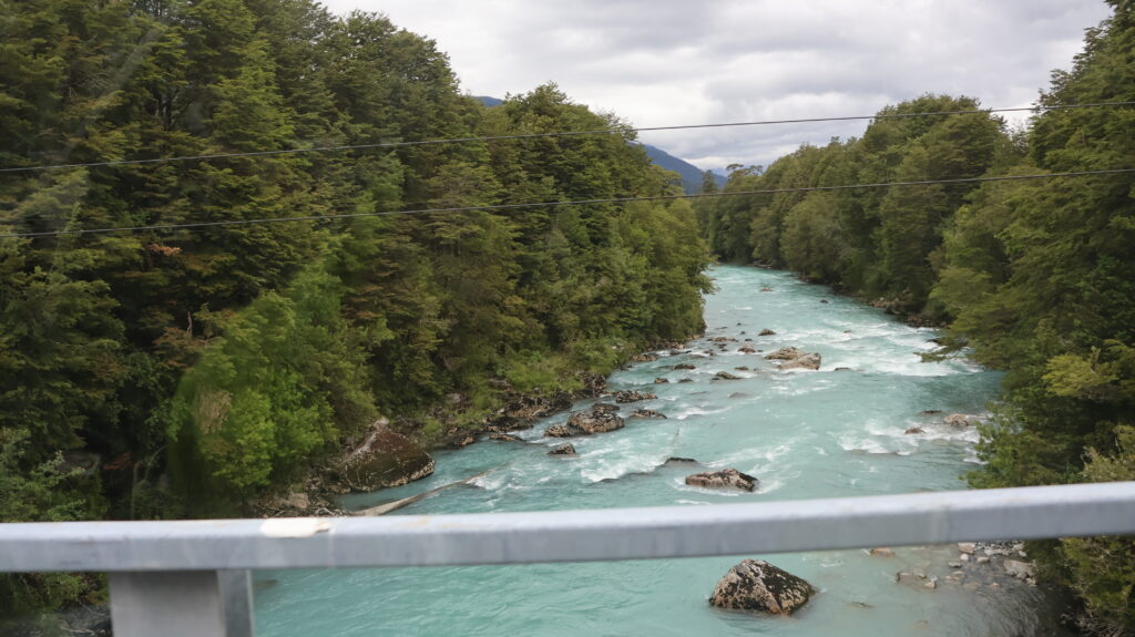 Wir halten kurz am Cisnes Fluss und geniessen ein paar Sonnenstrahlen. Es soll heute regnerisch sein.
