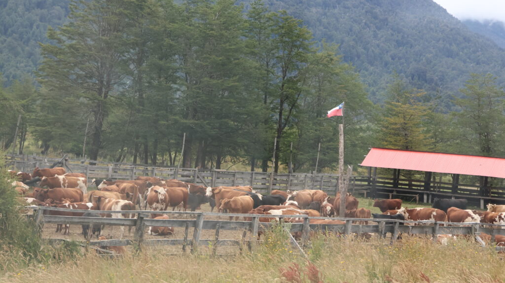 Immer wieder werden wir kurz geduscht. Wir sehen viele Gletscher rundherum. Zwischen den hohen Bergen ist es sehr dunkel. Bei la Junta öffnet sich das Tal ein wenig und es gibt ein paar kleine Bauernhöfe mit Ziegen und Schafen. Die Häuser sind alle verschieden. Was uns hier aufgefallen ist, man kann nicht frei zu einem Fluss oder See fahren. Alles ist eingezäunt. Führt eine Strasse zum Gewässer, ist ein Tor davor. Nur in Ortschaften und an Aussichtspunkten ist der Zugang frei