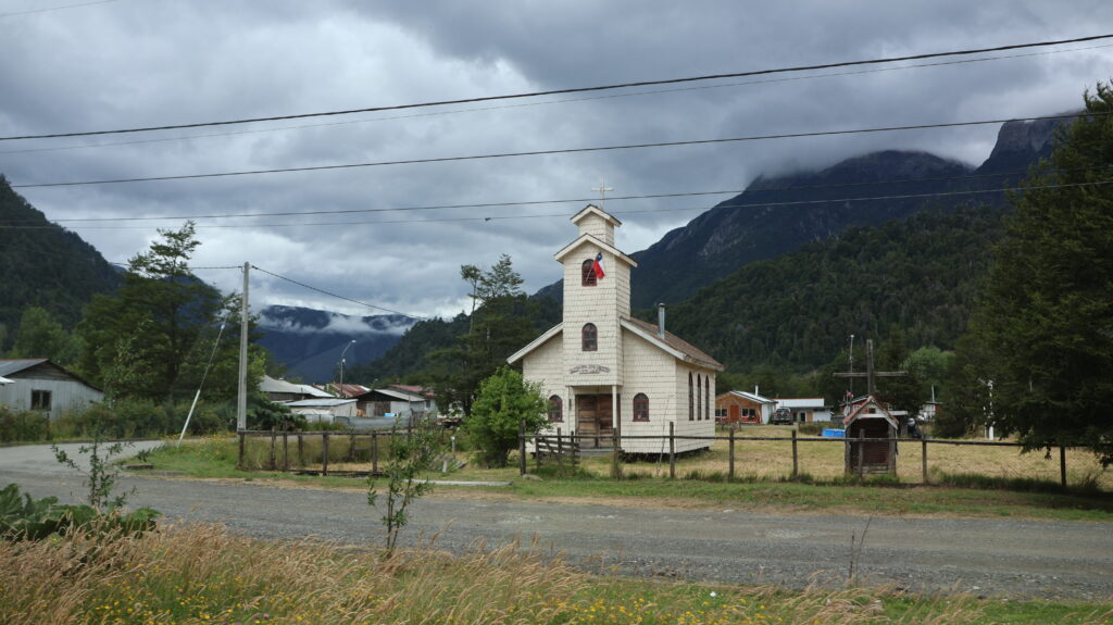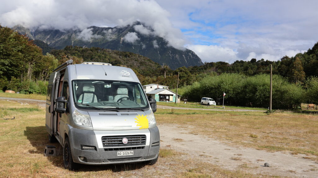 In Chaitén scheint die Sonne wieder. Sie wärmt ein wenig, denn der Wind ist kalt. Ausserhalb des Ortes finden wir einen Campingplatz.