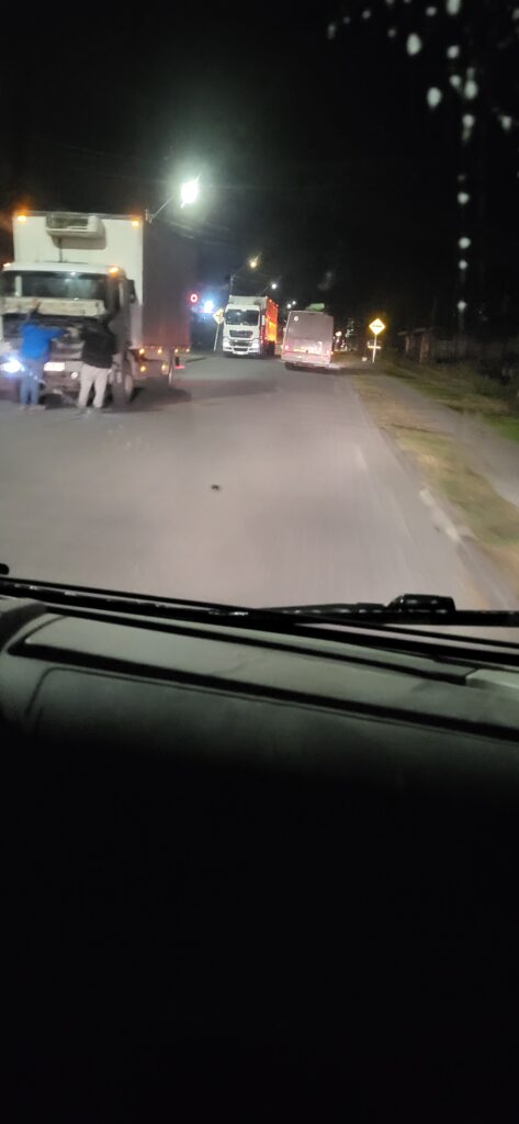 Wir sind ganz knapp bereit, als wir die Fähre verlassen dürfen. Manfred sucht in der Nacht, einen Stellplatz. Er fährt an den Fluss Rio Negro, wo wir feststellen, dass wir nicht die Einzigen sind, die einen Standplatz suchen.