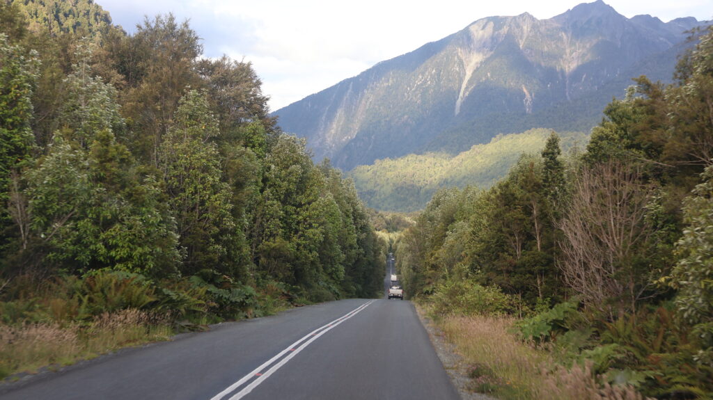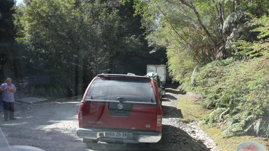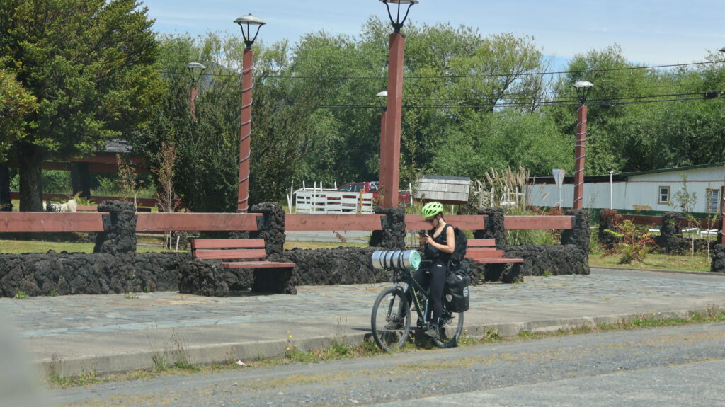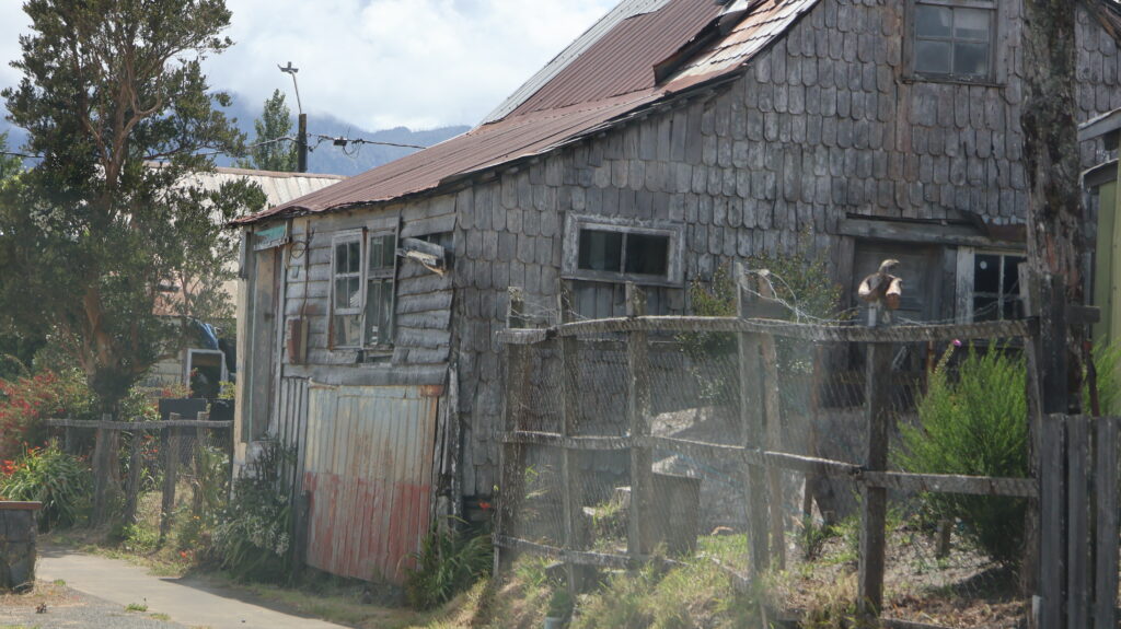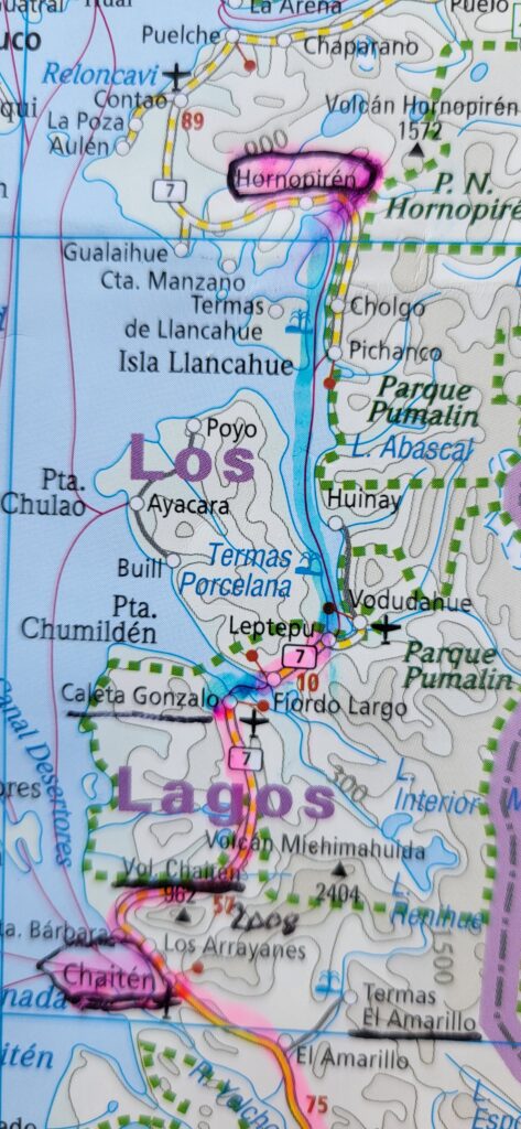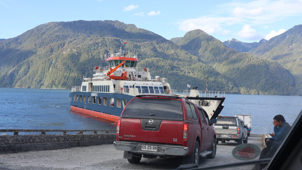 Wir haben uns entschlossen heute schon die Fähre nach Hornopirén zu nehmen. Daher müssen wir nach Chaitén fahren und Fahrkarten kaufen. Im Internet will es einfach nicht funktionieren. Es wird nur die umgekehrte Reise angeboten. Zuerst möchten wir noch Früchte und Gemüse einkaufen, vielleicht auch noch Fleisch. Zwei Geschäfte sind gar nicht offen und in anderen zwei wird mir schlecht, wenn ich das Angebot von Gemüse und Früchte ansehe. Fleisch liegt unverpackt in Körben gefroren in Truhen. Jeder kann da sein Hähnchenbein aussuchen und in eine Plastiktüte packen.