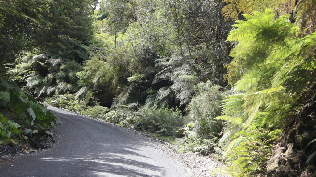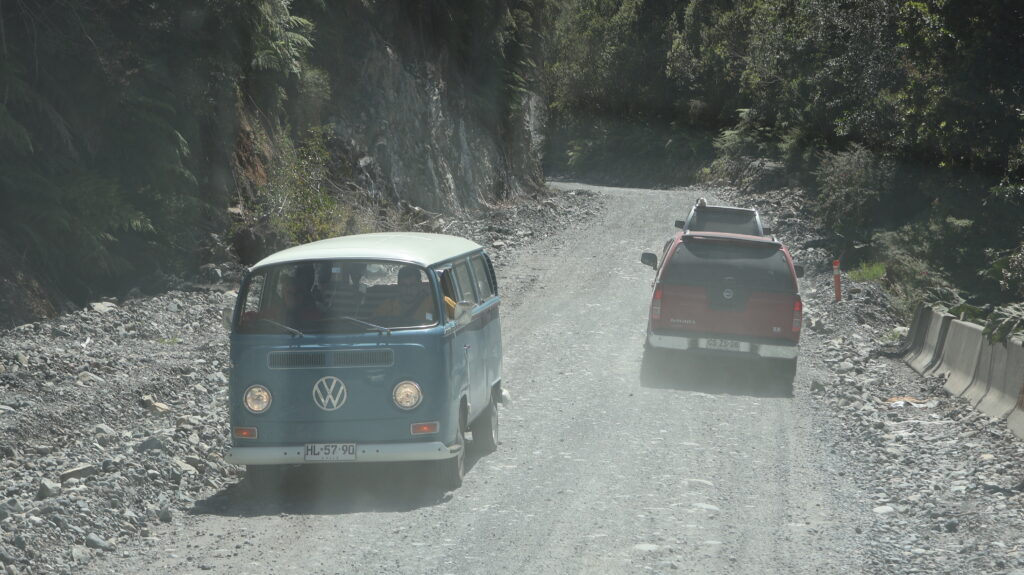 Wir machen uns auf den Weg. Bis St. Barbara ist die Strasse geteert. Wir machen am Strand Mittagshalt. Danach hat uns der Urwald wieder. Fremde Vogelstimmen schallen an mein Ohr. Ich komme mir vor wie in einem Film über den Regenwald. Manfred meint, es fehlt nur noch der Schrei von Tarzan. Einige Autos sind in gleicher Richtung unterwegs wie wir. Ein alter blauer VW-Bus kommt uns entgegen. Hallo Walti, bist du das?