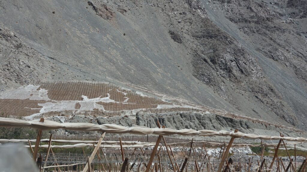 Oben angekommen steigen wir aus und wundern uns, dass auf 4700m kein Schnee liegt. Auch wenn man weiter nach oben sieht, bemerkt man nur ein paar kleine Schneefelder. Das soll Büsserschnee sein.