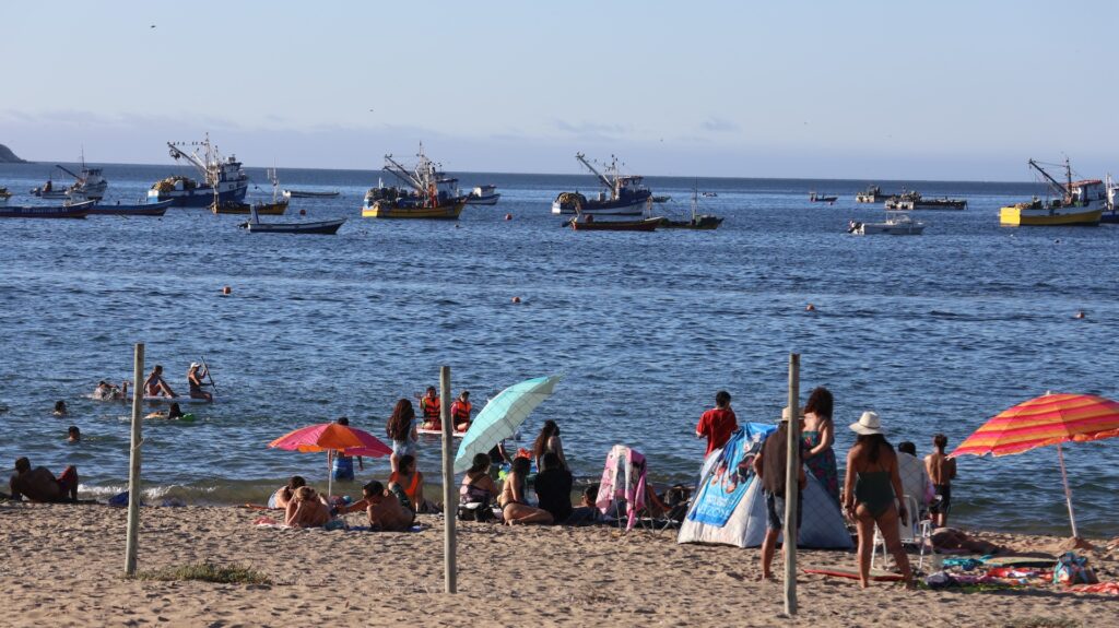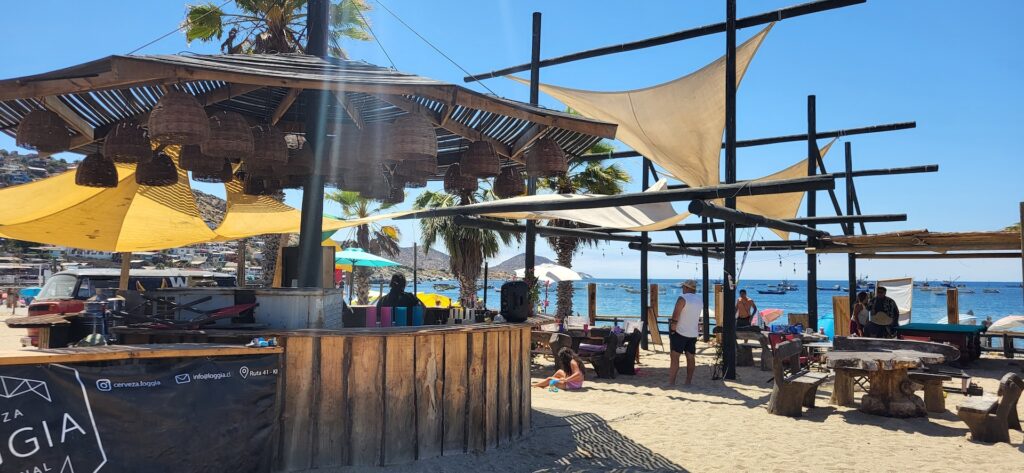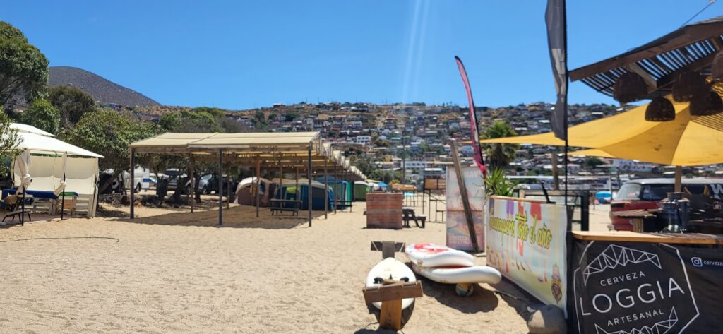 Wir fahren nun dem Pazifik entlang bis nach Guanaqueros. Der Campingplatz ist riesig und beinahe voll. Die Urlauber haben mit Zelten richtige Zeltstädte gebaut und jeweils einen Plastikzaun aufgestellt. Wir stehen direkt am Meer. Nur der Strand ist zwischen uns und dem Wasser.