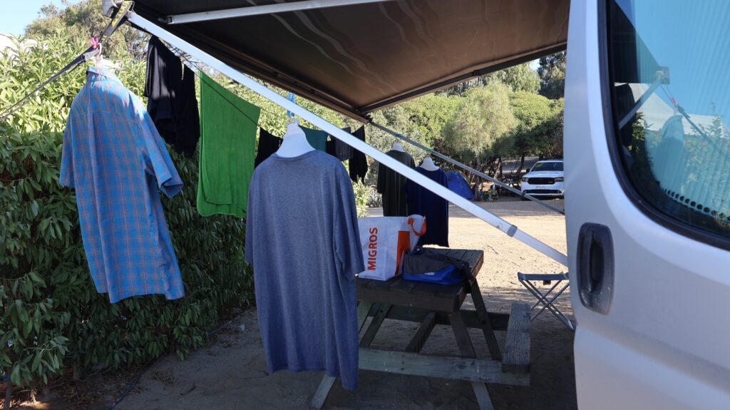 Ich bin schon eine Wasserratte, aber anstatt zu schwimmen, habe ich die dreckige Wäsche gewaschen. Am Abend haben wir ein Restaurant aufgesucht. Wir konnten die Strasse beobachten. Es ist sehr viel los hier. Am Strand gibt es eine Bar und laute Musik. Das gibt eine Nacht mit Ohrenstöpseln!