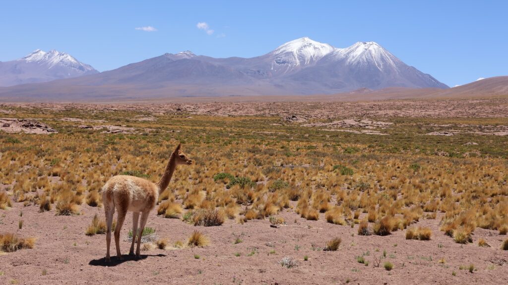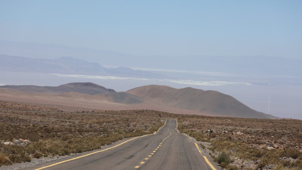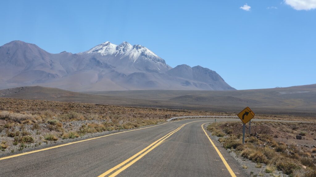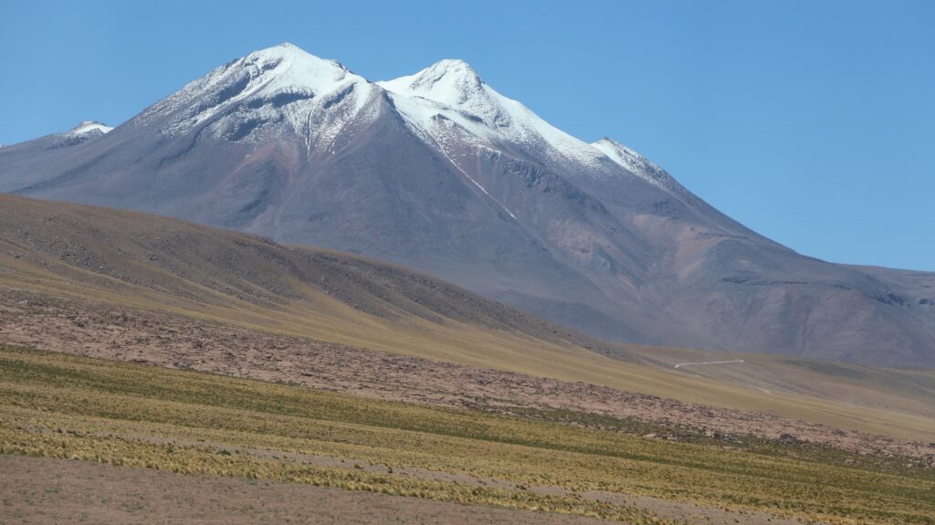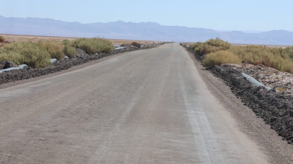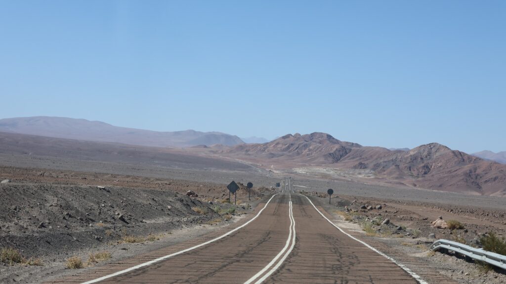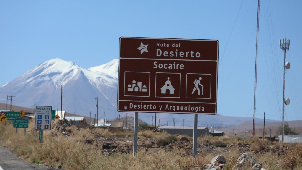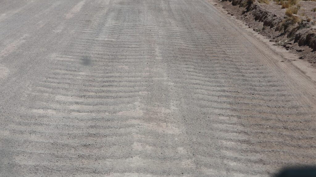 Die Teerstrasse führt zuerst entlang dem Salar Atacama. Danach führt sie ins Landesinnere nach Socaire, das auf 3300m liegt. Bei 3800m biegen wir in eine Schotterpiste ein. Die führt auf 4200m Höhe zum Eingang der Lagunen.