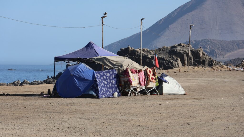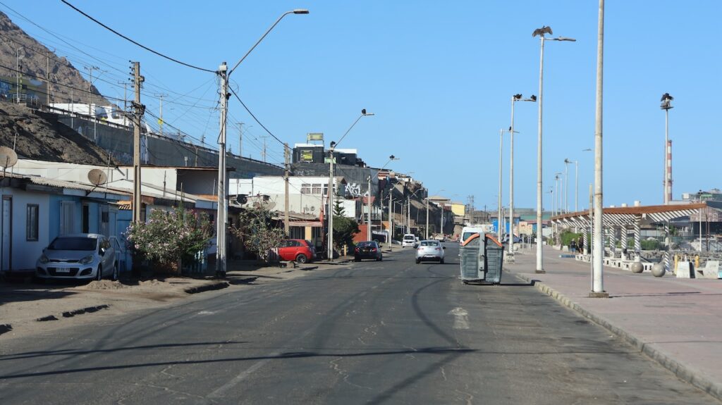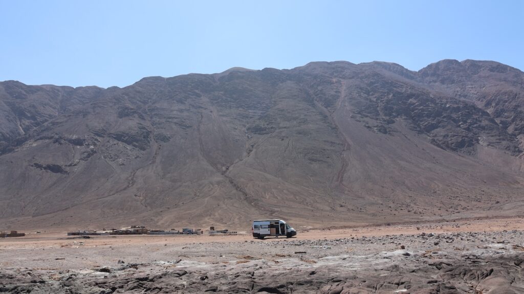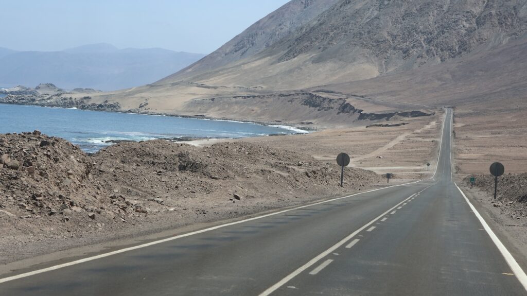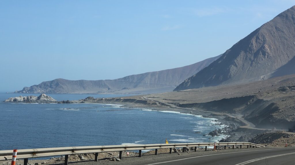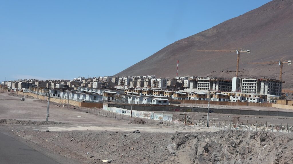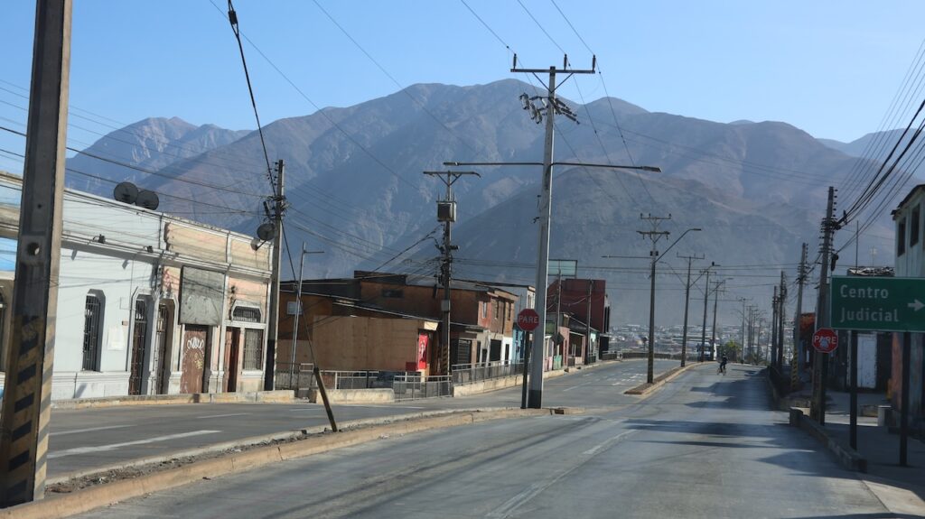40 Kilometer vor Iquique liegt der Flughafen und da fängt auch die Autobahn in die Stadt an. 20 Kilometer vor der Stadt eine «Satellitenstadt». Dann erreichen wir Iquique. Manfred hat einen Stellplatz in der Stadt ausgesucht. Durch ein Tor fahren wir in eine Art Hinterhof. Da stehen Auto und Camper dicht aneinander. Junge Leute sind da aus Brasilien und Kolumbien. Der Eigner ist nicht da, aber die Jungen führen uns gut ein. Ich kann mit der Waschmaschine waschen. Manfred kümmert sich um das Auto. Die Bremsscheiben sind komplett «Am Arsch!» Entschuldigung, aber es ist so. Wir werden zwei Nächte hier verbringen und das Auto in Ordnung bringen. Auch müssen wir wieder mal das Gesehene einordnen und verdauen