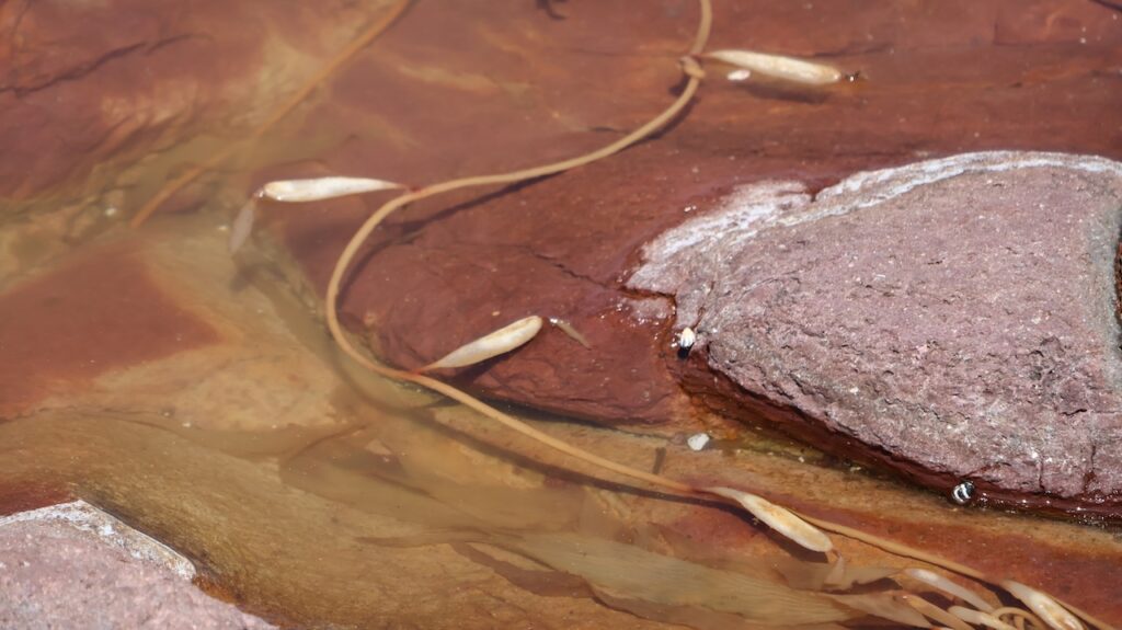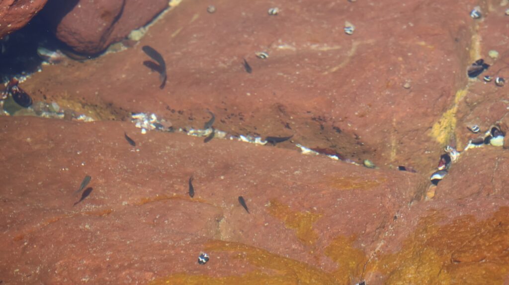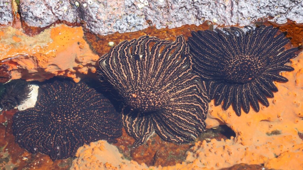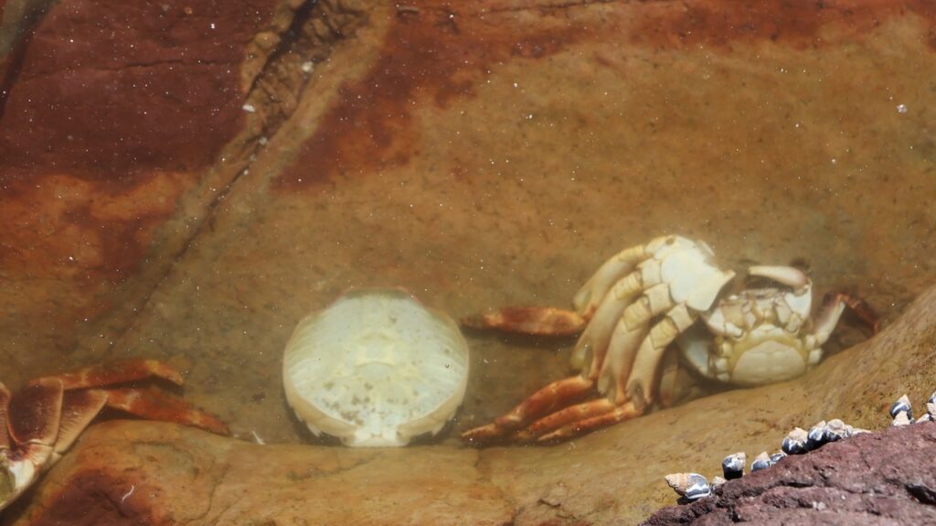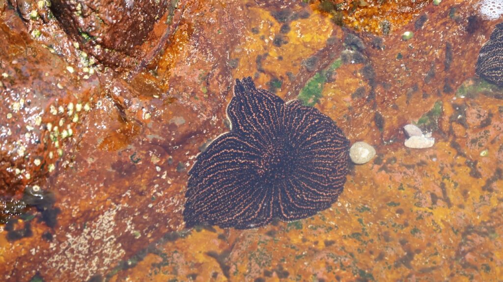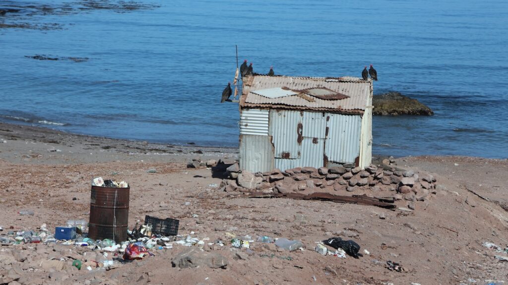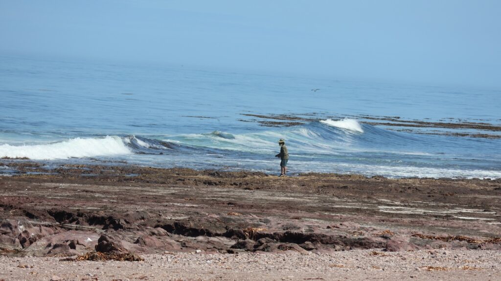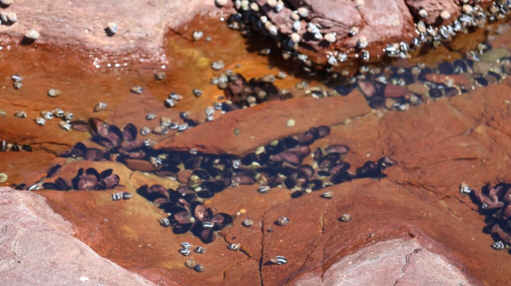 Am Strand essen wir und sofort kommen die Truthahngeier angeflogen. Sie sind überall, wo es Müll hat! Wir laufen zur Brandung und schauen in die kleinen Wassertümpel zwischen den Felsen. Es gibt einiges zu entdecken.