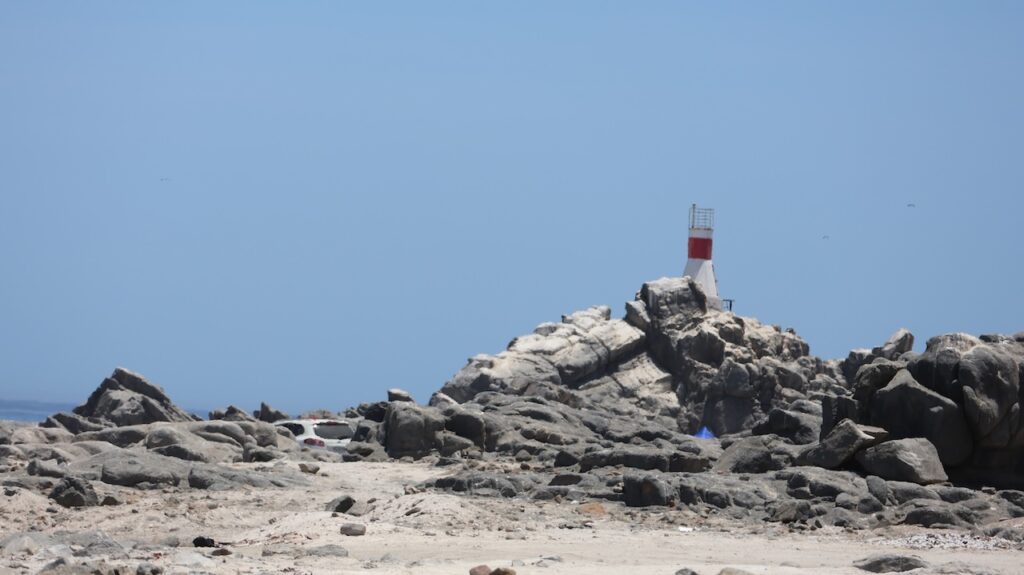 Am Morgen sehen wir erst so richtig wie dreckig der Strand ist und staubig die Stadt. Ohne etwas zu essen, fahren wir zum Tanken und dann aus der Stadt. Es ist kaum zu glauben, aber hier gibt es einen Sandgolfplatz.