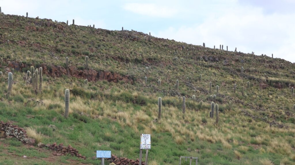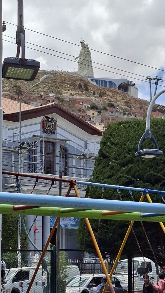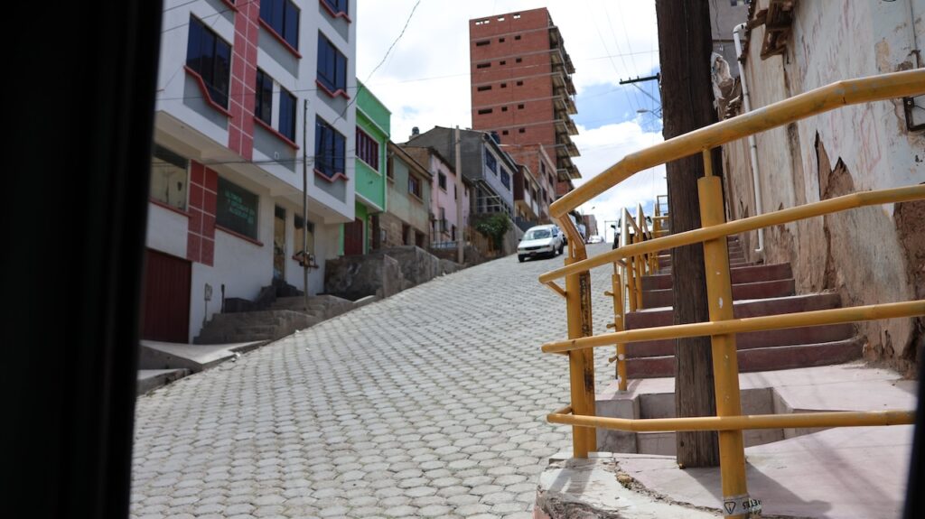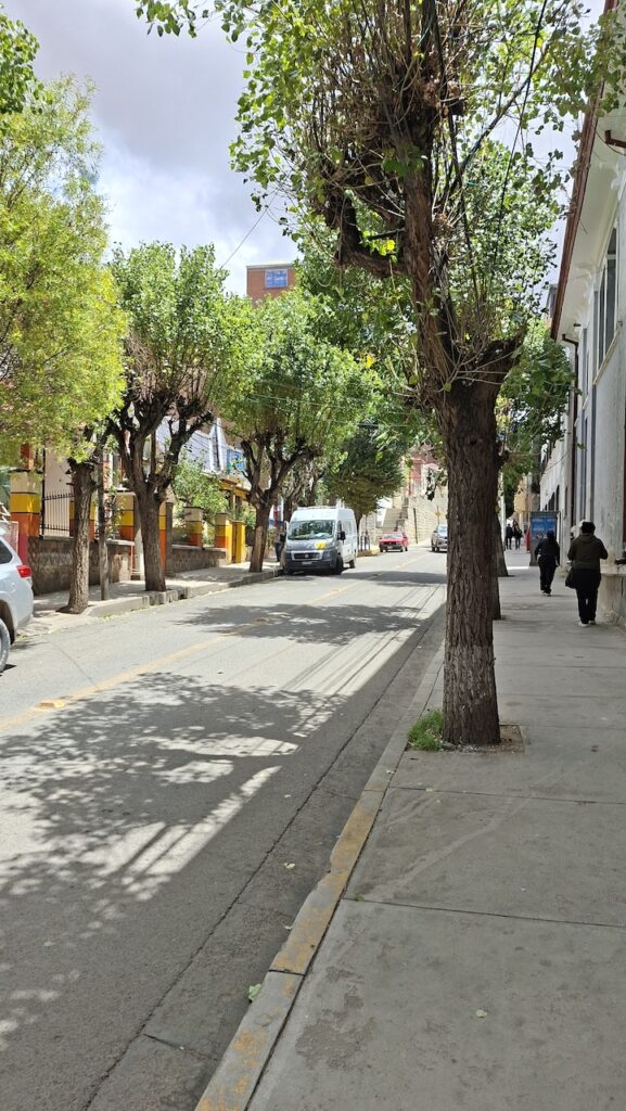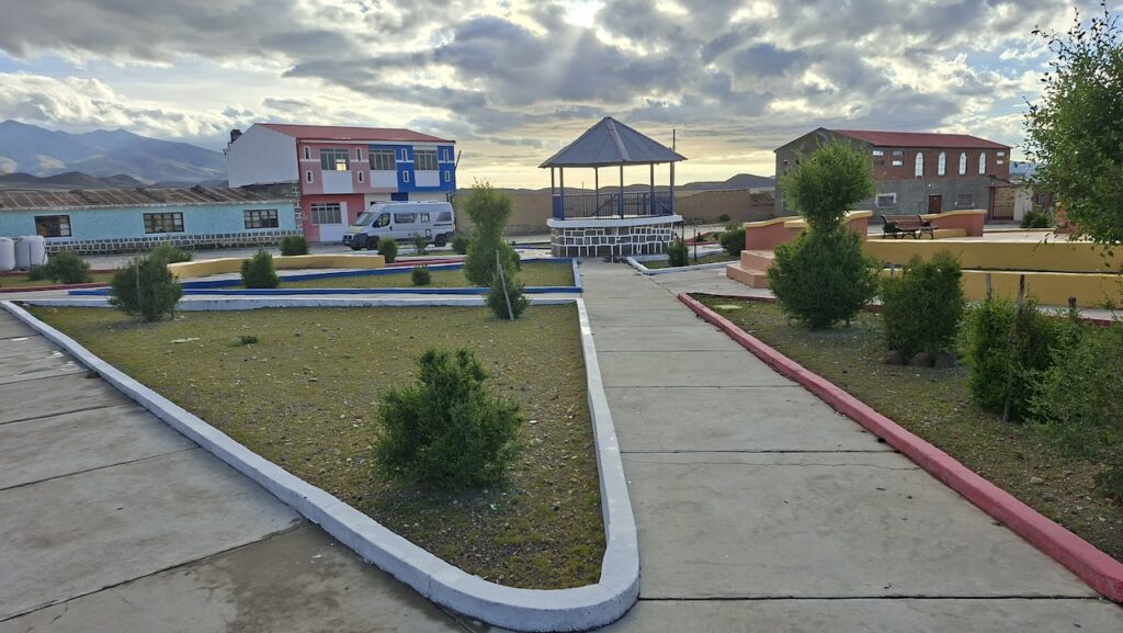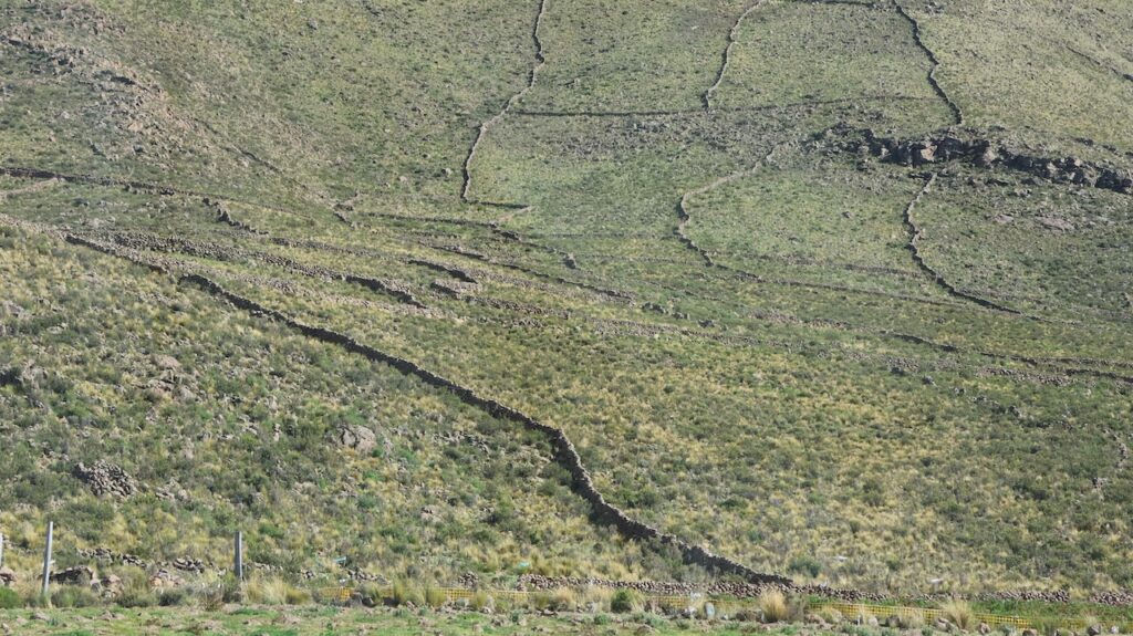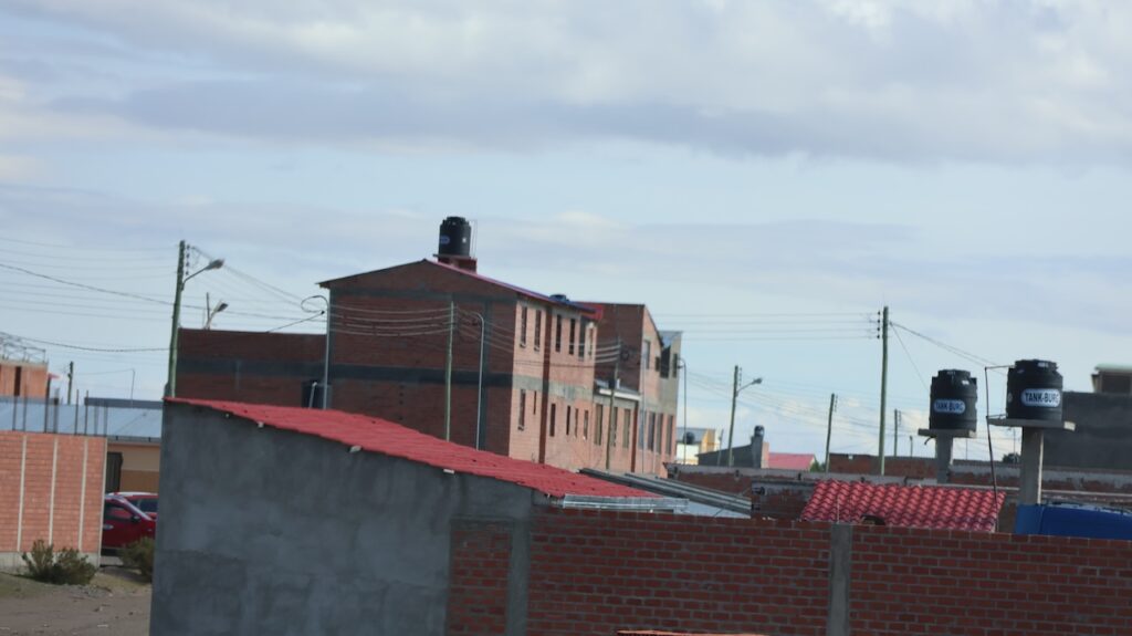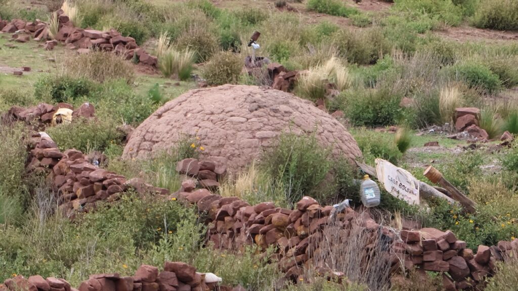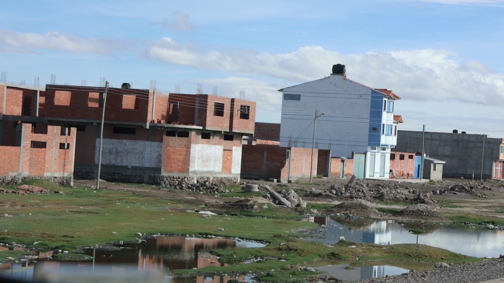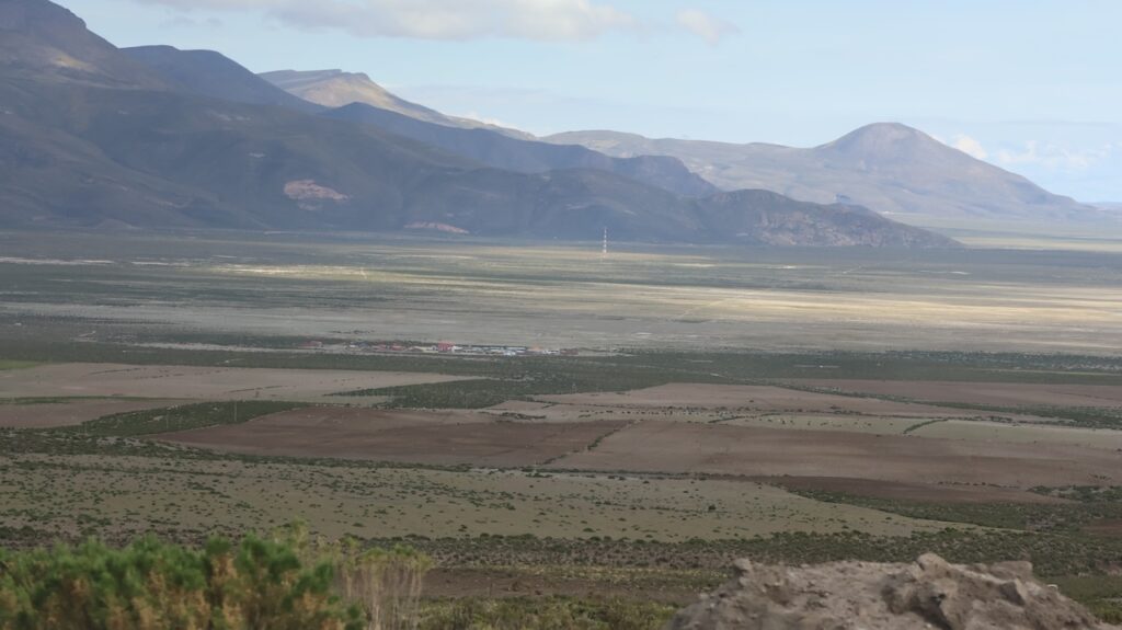 Wir machen uns auf den Weg nach Oruro. Wir bewegen uns die ganze Zeit zwischen 3600 und 3800 müM. Es sieht flach und grün aus. Sehr viele grosse Lama Herden bewegen sich auf der Ebene. Es sind auch Felder angelegt. Auf mehreren Hügeln sind mit Steinmauern Abteile errichtet worden. Es fällt uns auf, dass es hier keine Bretterhütten gibt. Alles aus Stein gebaut. Auch farbenfroh. Die Dächer sind vielfach rot oder blau und die Wände, wenn sie denn verputzt sind auch farbig bemalt.