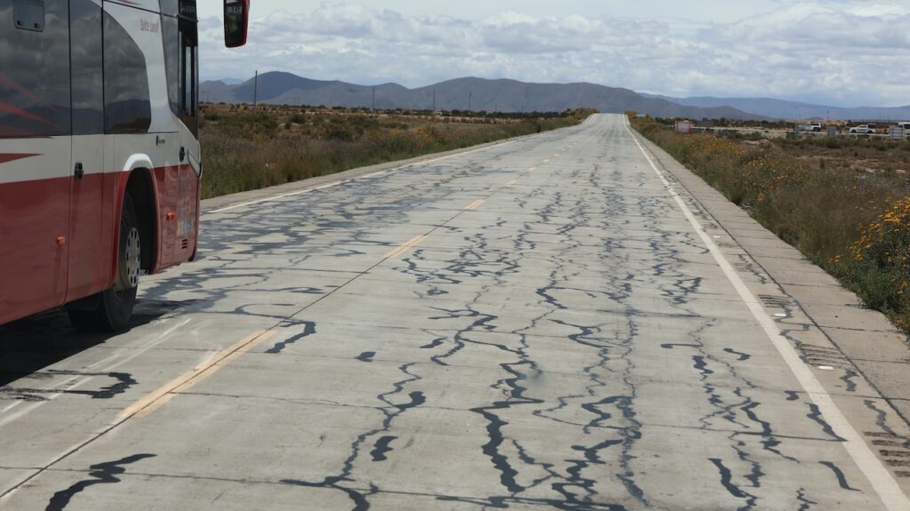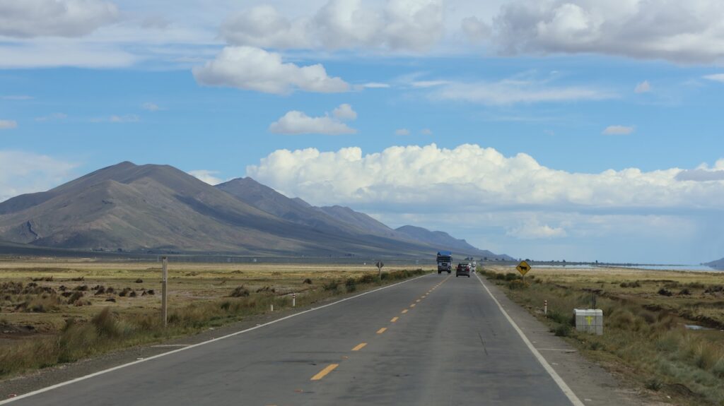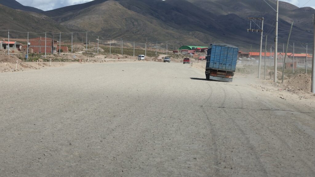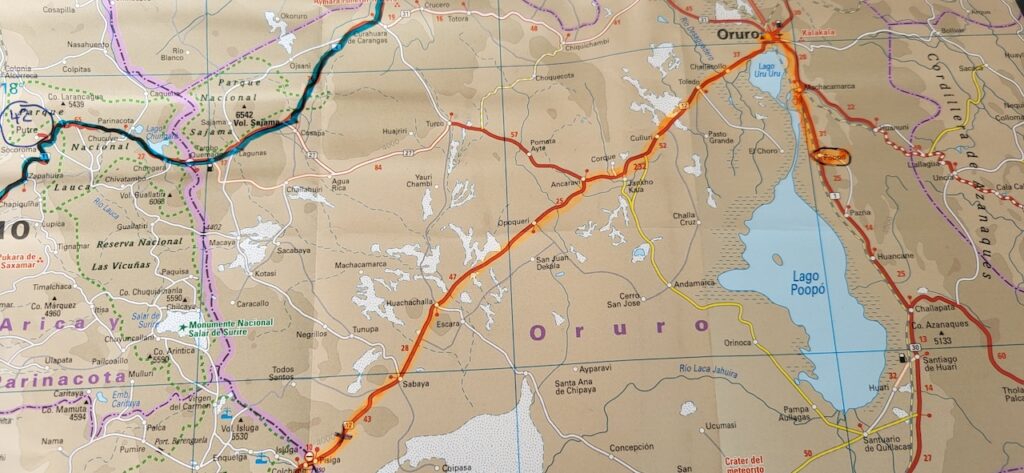 Ausserhalb von Oruro wird die Strasse wieder erneuert und wir fahren 22 Km auf einer unsäglichen Piste. Manfred ist nach der schlechten Nacht und dem Konzentrieren wegen den Schlaglöchern bald einmal müde. Wir suchen uns ein Plätzchen bei Poopo zum Schlafen.