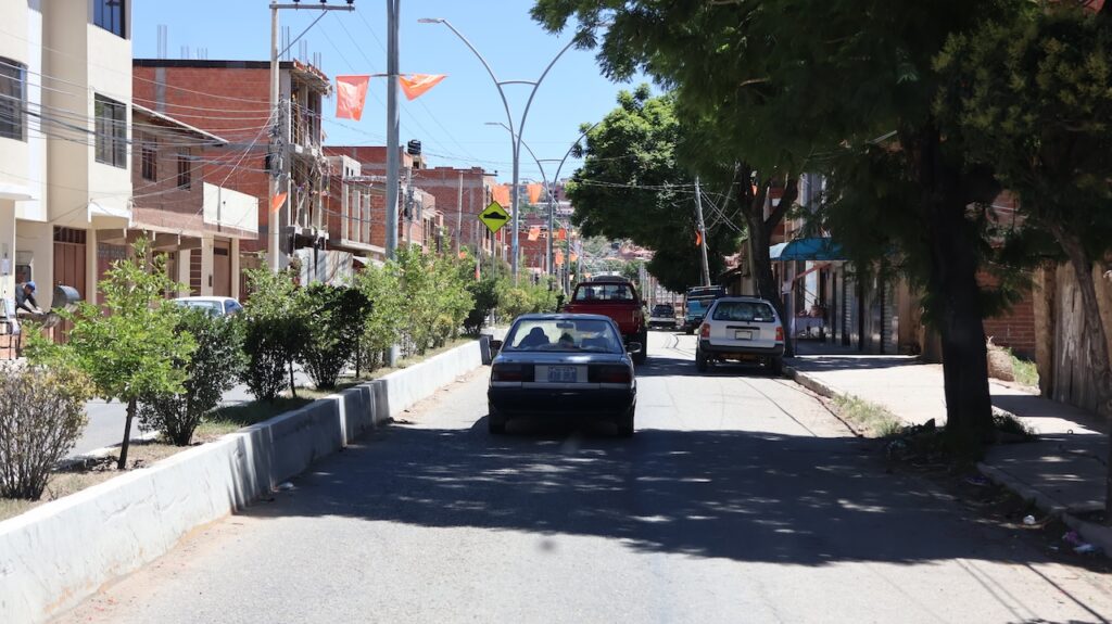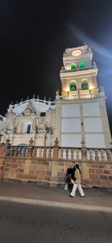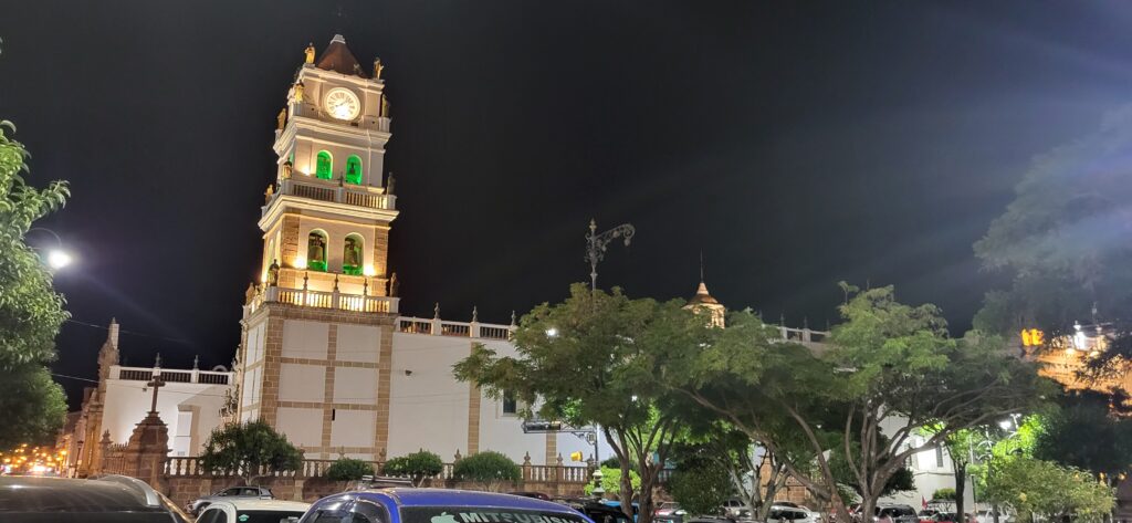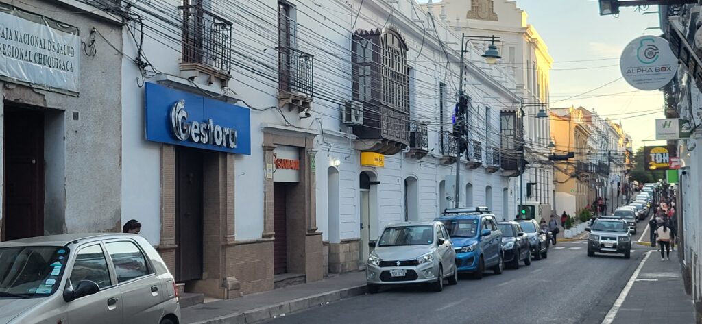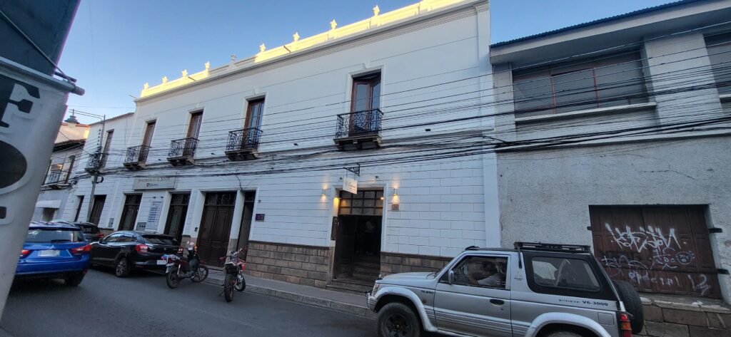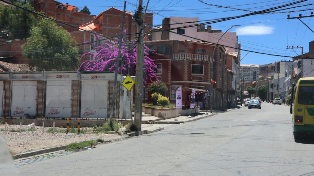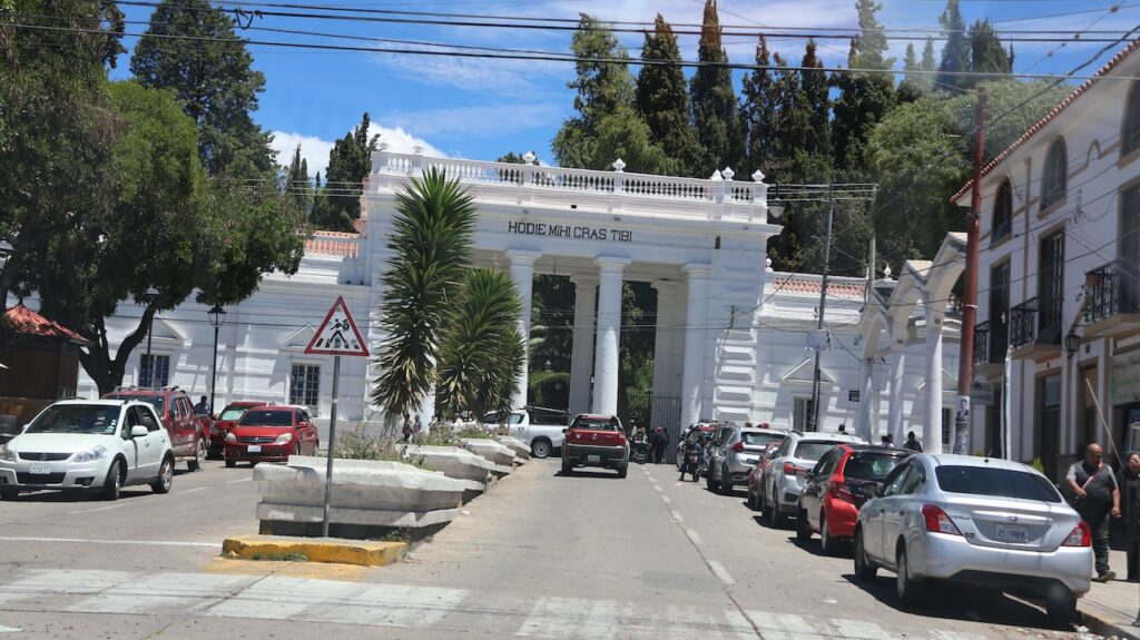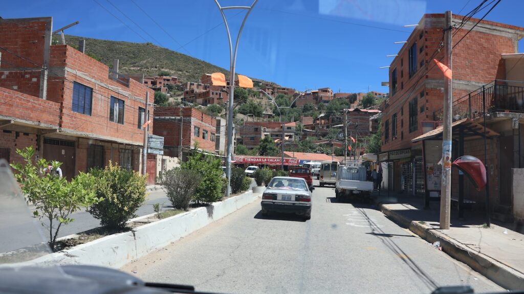 Wir erreichen Sucre gegen 12 Uhr. Manfred hat eine Adresse, wo man mitten in der Stadt privat campieren kann. Aber zuerst kommen wir nochmals an einer Tankstelle vorbei. Wir stellen uns in die Warteschlange ein. Ich sehe, dass bei der Dieselzapfsäule niemand steht. Ich laufe zum Mann, der an der Benzinzapfsäule bedient und frage ihn, ob er Diesel hat. Er nickt und zeigt hinüber. Ich winke Manfred, der zur Zapfsäule fährt. Eine Frau bedient ihn und will den Pass sehen und die Kennzeichennummer aufschreiben. Erst dann bekommen wir den Tank mit Diesel gefüllt. Wir müssen auch bar bezahlen. In Bolivien herrscht grosse Knappheit an Treibstoff. Das ist ein grosses Problem für alle Touranbieter für Touristen. Es kann sein, dass sie bis zu drei Tage auf Benzin warten müssen.