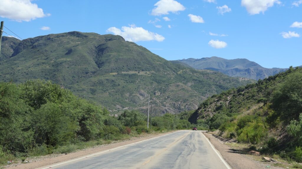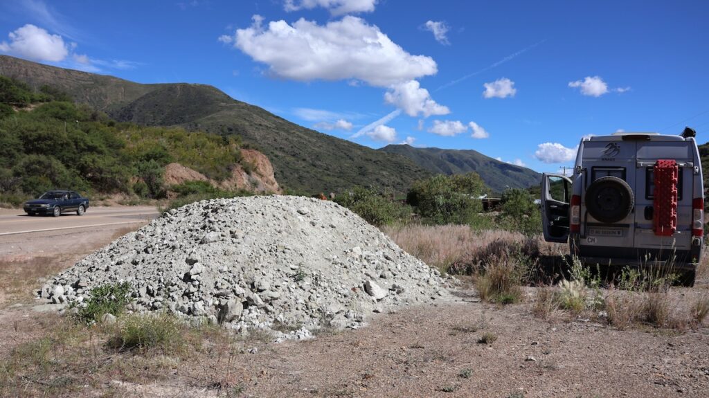 Es geht weiterhin bergauf und ab bis Sucre. Also werden die Bremsen wieder beansprucht. Prompt leuchtet das Warnlicht nach einer Weile wieder auf. Manfred ist mit dem Latein am Ende und will heute Nachmittag mit seinem Garagisten Kontakt aufnehmen.