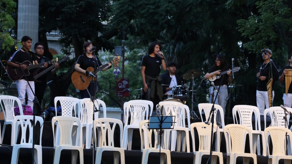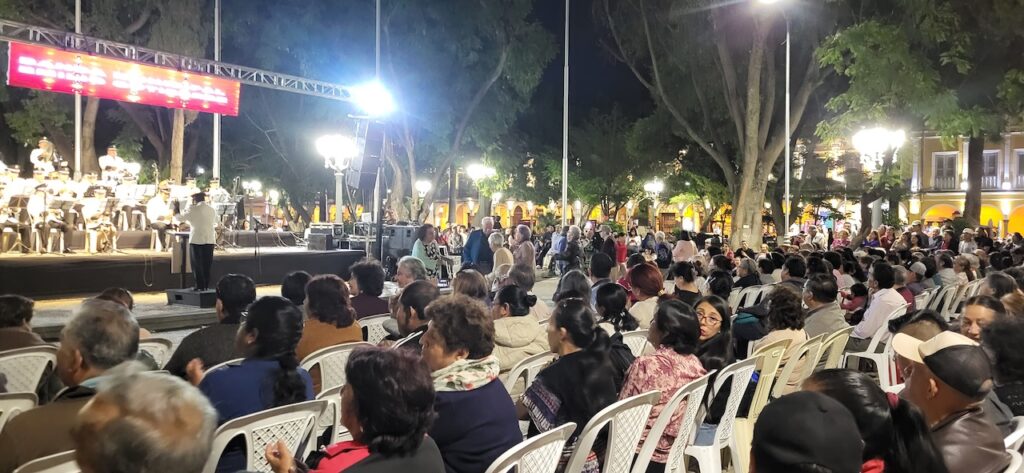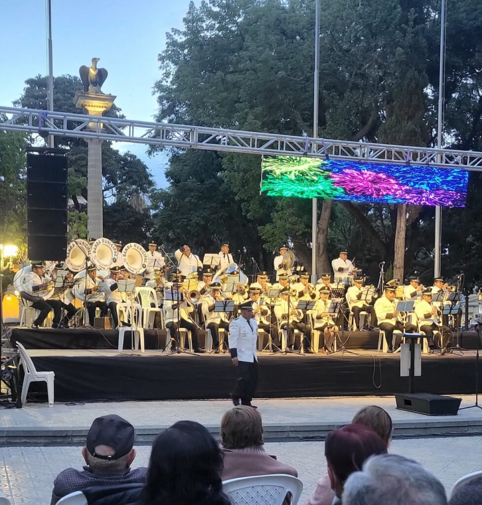 Danach haben wir im Park 14. September live Musik gelauscht. Der Platz ist gestossen voll. Zuerst haben jung Musiker südamerikanische Musik zum Besten gegeben. Danach tritt die Stadtmusik auf. Sie beginnt ganz zahm und hat sich toll gesteigert. Viele, vor allem ältere Menschen tanzen. Die, die auf den Stühlen sitzen bleiben klatschen alle im Takt. Es herrscht eine ausgelassene Stimmung. Beim Chinesen essen wir etwas zu Abend und mit dem Taxi geht es zurück zur Seilbahnstation, wo wir zum 2. Mal übernachten.