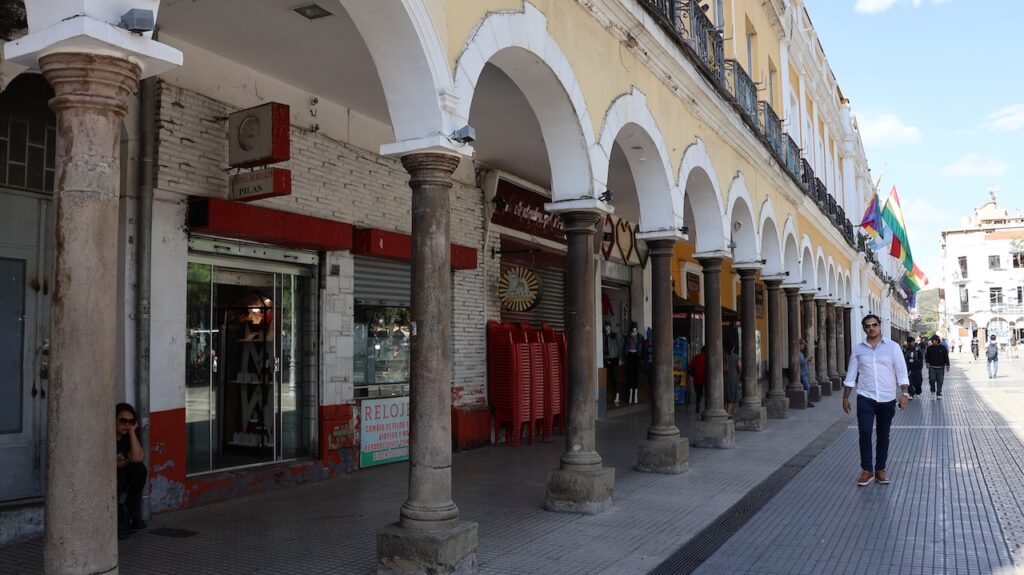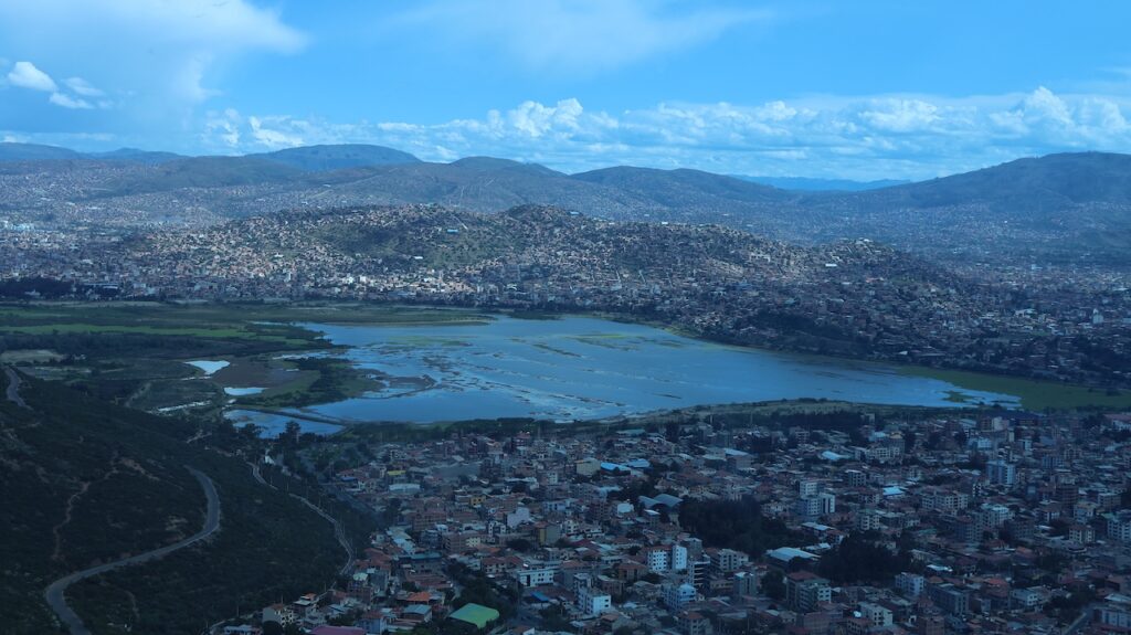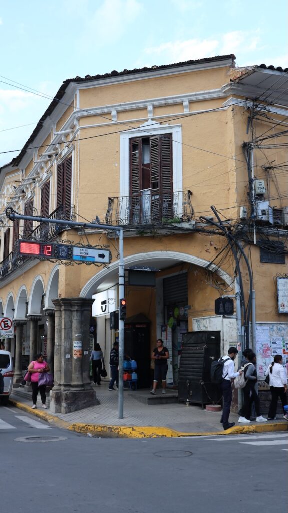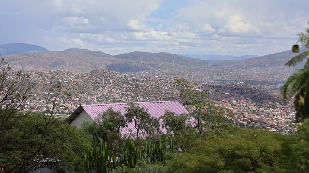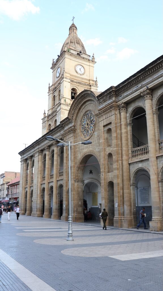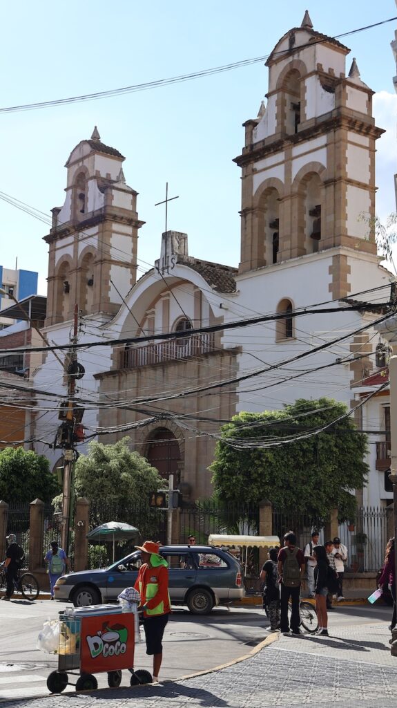 Im Jahr 2000 herrschte hier Wasserkrieg. Die Stadt hat die Wasserrechte an eine Firma in USA verkauft, die einen Damm bauen sollte. Sofort verdreifachte die Firma den Wassertarif. Die Menschen gingen auf die Strasse und demonstrierten. Der Protest wurde vor allem von Frauen getragen. Es gab einen viertägigen Generalstreik. Die Regierung hetzte das Militär auf die Demonstranten. Nach 2 Monaten Protesten und sieben Toten gab die Regierung nach und nahm die Privatisierung des Wasserrechts zurück.Die Stadt wird auch Frühlingsstadt genannt, da hier immer ein angenehmes Klima herrscht. Wir sind mit dem Taxi in die Stadtmitte gefahren. Wie auch in Sucre gibt es hier noch sehr viele Häuser aus der spanischen Herrschaft. Einige hätten eine Renovation nötig. Wir sind in einem alten Café eingekehrt.