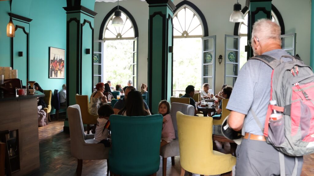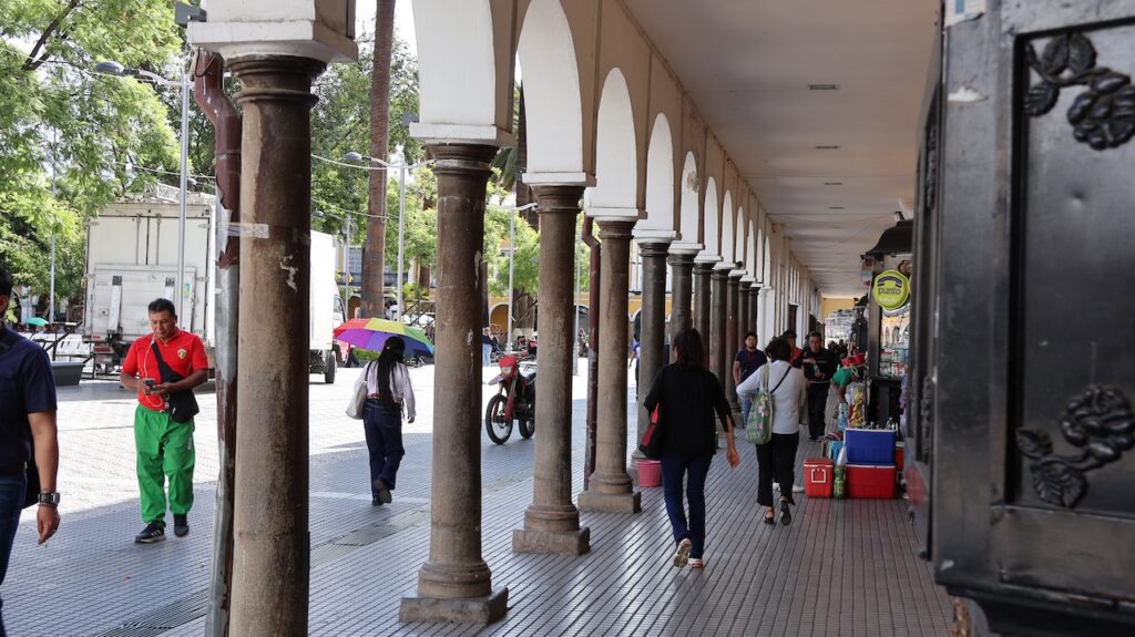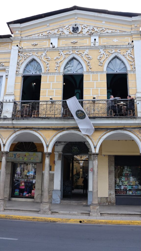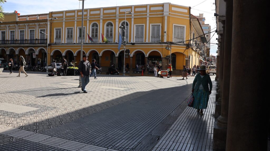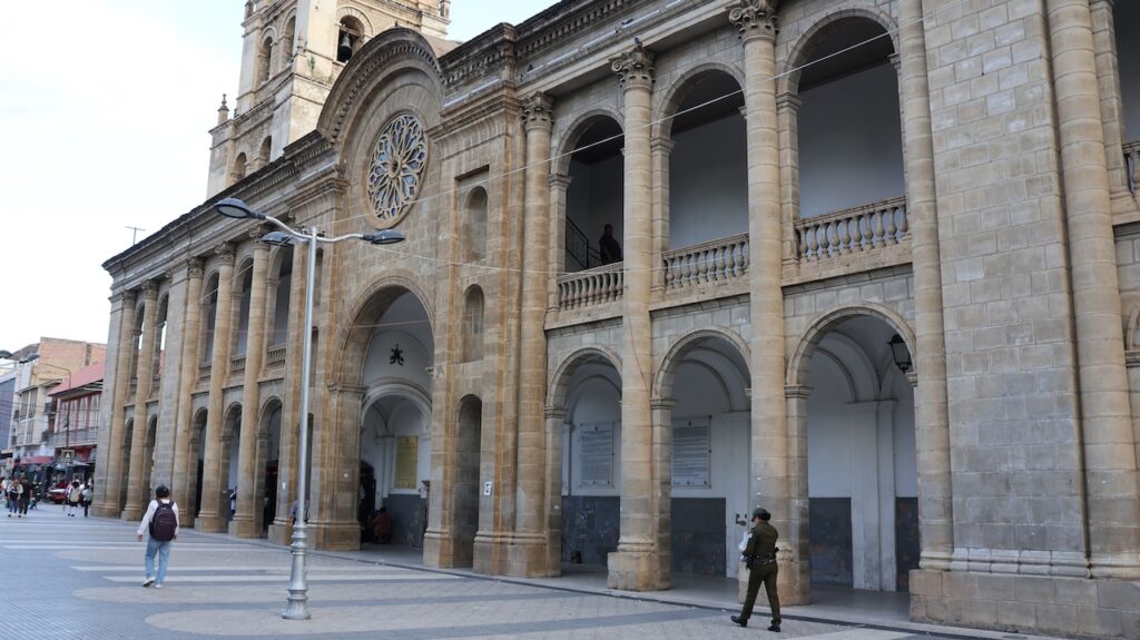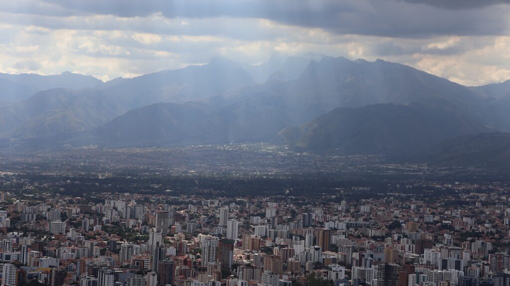 Im Jahr 2000 herrschte hier Wasserkrieg. Die Stadt hat die Wasserrechte an eine Firma in USA verkauft, die einen Damm bauen sollte. Sofort verdreifachte die Firma den Wassertarif. Die Menschen gingen auf die Strasse und demonstrierten. Der Protest wurde vor allem von Frauen getragen. Es gab einen viertägigen Generalstreik. Die Regierung hetzte das Militär auf die Demonstranten. Nach 2 Monaten Protesten und sieben Toten gab die Regierung nach und nahm die Privatisierung des Wasserrechts zurück.Die Stadt wird auch Frühlingsstadt genannt, da hier immer ein angenehmes Klima herrscht. Wir sind mit dem Taxi in die Stadtmitte gefahren. Wie auch in Sucre gibt es hier noch sehr viele Häuser aus der spanischen Herrschaft. Einige hätten eine Renovation nötig. Wir sind in einem alten Café eingekehrt.