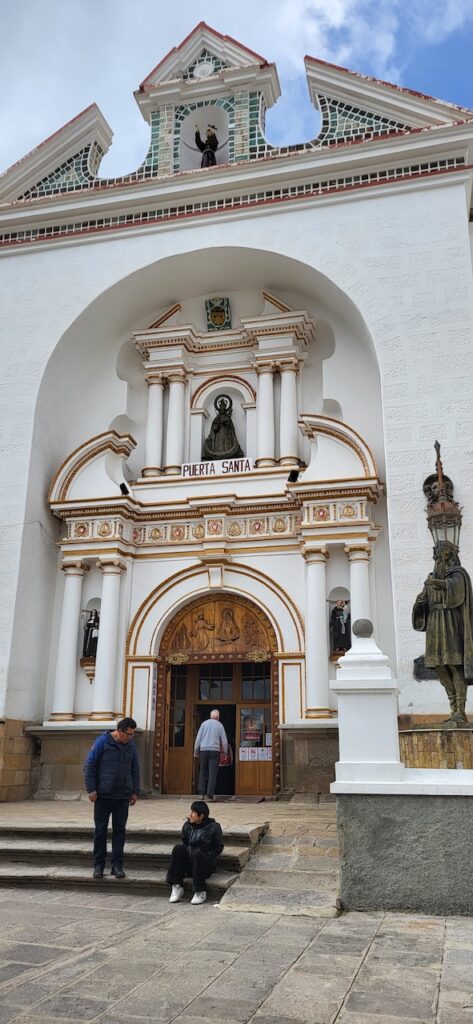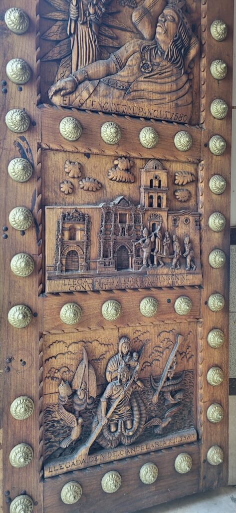Bevor wir uns wieder auf den Weg machen, laufen wir nochmals zur Kirche. Die hölzerne Eingangstüre ist der Hammer. Drinnen wieder Fotoverbot. Wir werden richtig geblendet vom Gold, das die vielen Altare ziert. Man kann hier auch sein Auto segnen lassen. Die meisten Fahrer dekorieren ihr Fahrzeug vor der Segnung.
