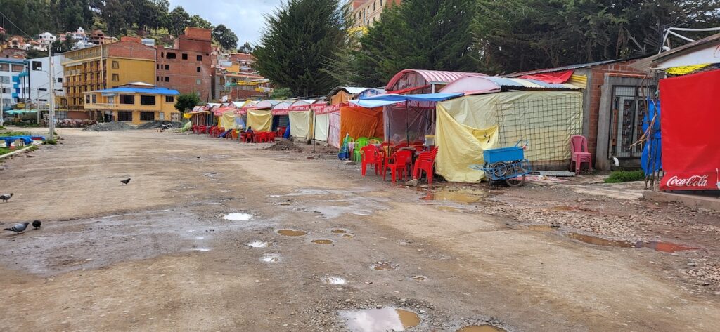In der Ortschaft Juli will Manfred Geld abheben, kommt aber zuerst Mitten in einen Markt zu stehen. Bei Western Union sagt man Manfred, er könne nicht sich selbst Geld schicken!!??? Das erste Mal während unserer langen Reise, dass in einer Bank so etwas gesagt wird.