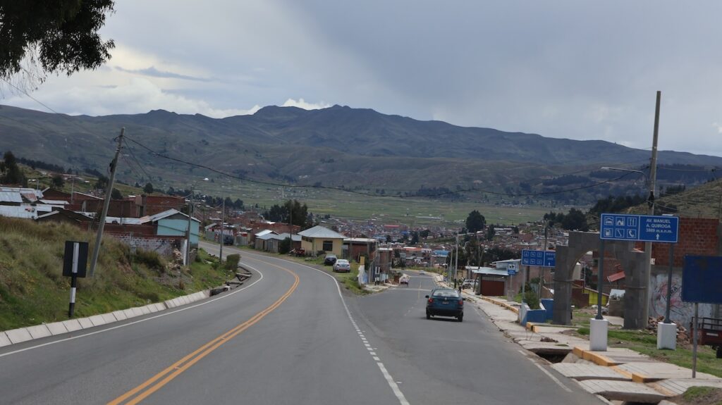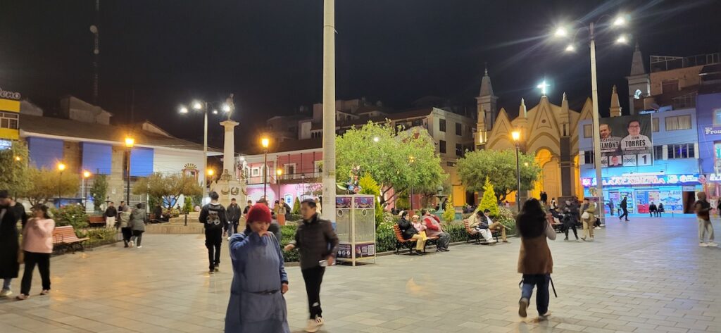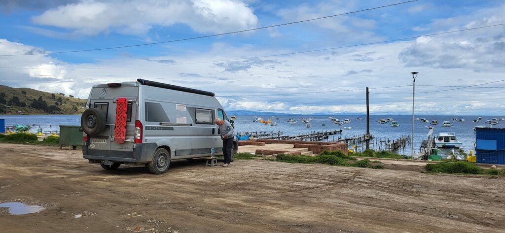 In Puno will Manfred zuerst Geld holen und wird wieder von Google in die engsten Gassen geschickt. Dazu ist dort erst noch keine Bank. Wir parkieren auf dem öffentlichen Parkplatz am See. Manfred geht zu Fuss in die Stadt. Die Banken haben aber schon geschlossen. In der Altstadt lassen wir uns ein gutes Abendessen schmecken. Als wir zurück auf den Parkplatz kommen, weisst uns die Platzwartin einen anderen Platz zu. Wir können hier schlafen, sollen aber ins Licht in die Nähe der Läden umziehen. Dort werden wir gesehen und die Securitas patrouilliert in der Nacht. Dort wo wir jetzt stehen, ist es stockdunkel.