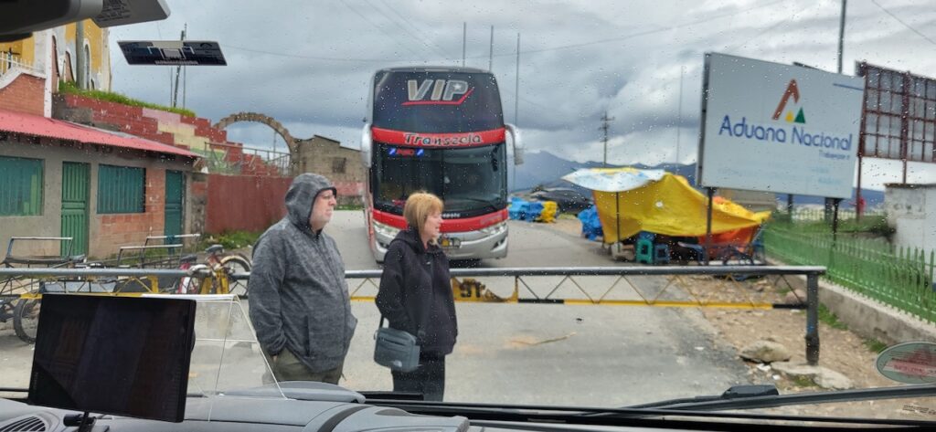 Wir müssen ein paar Minuten warten, bis eine Dame die Absperrung öffnet. Durch ein gemauertes Tor fahren wir nach Peru. Auch dort sind die Formalitäten kein Problem.