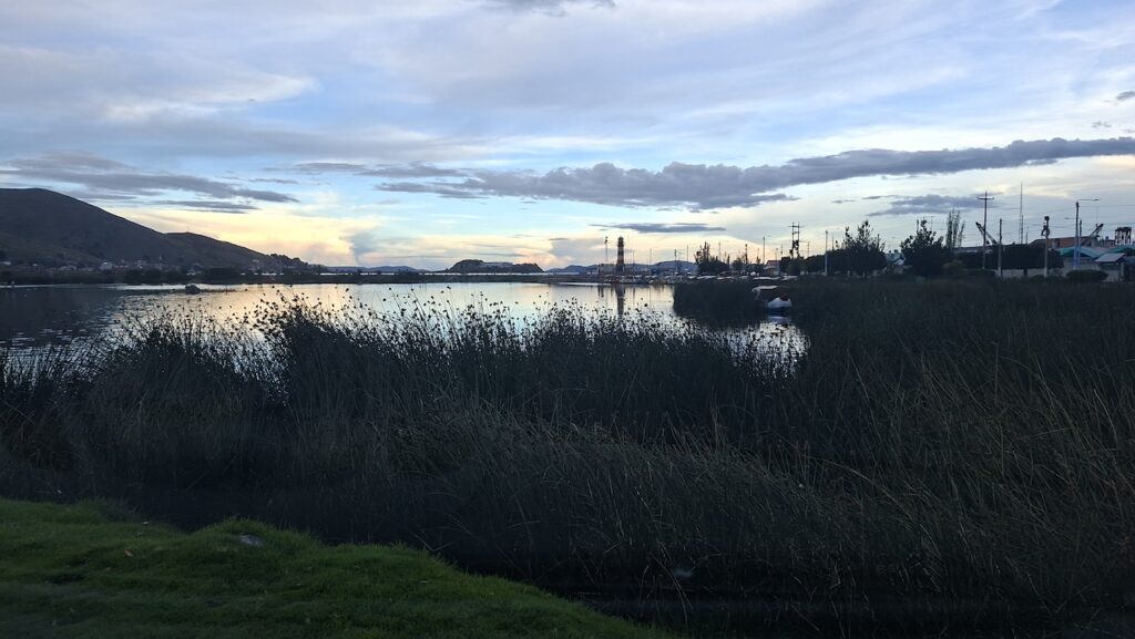 Heute ist der erste Tag am Titicacasee, an dem es zum Sonnenuntergang nicht regnet.