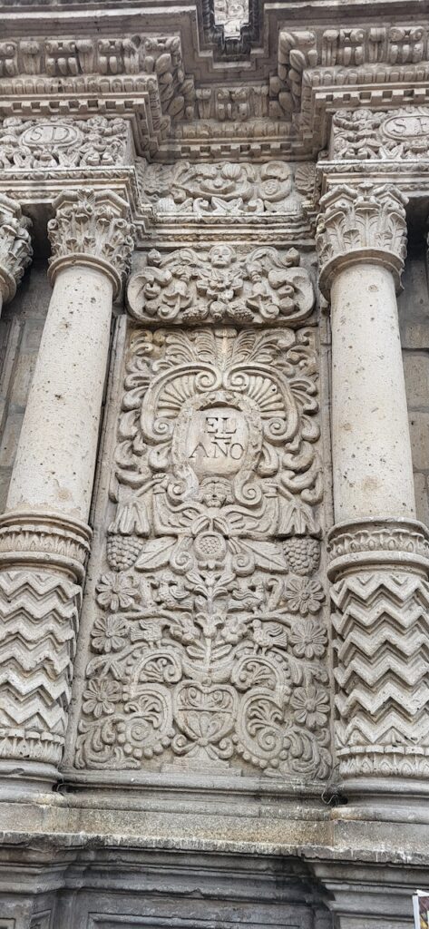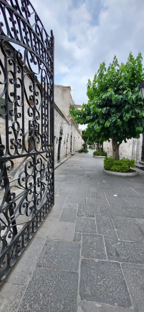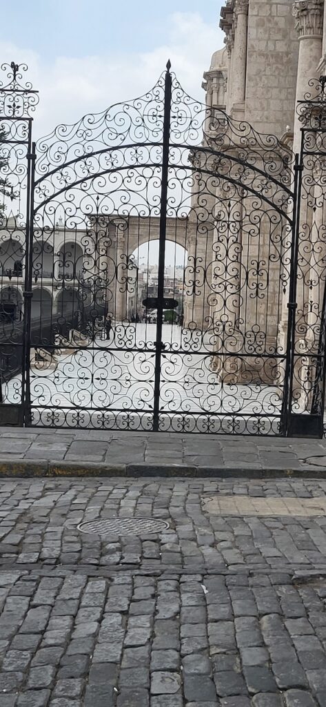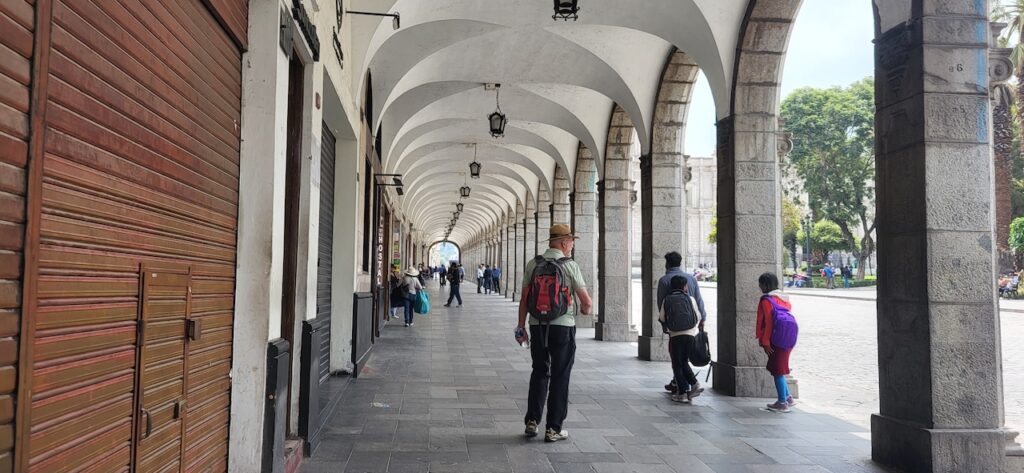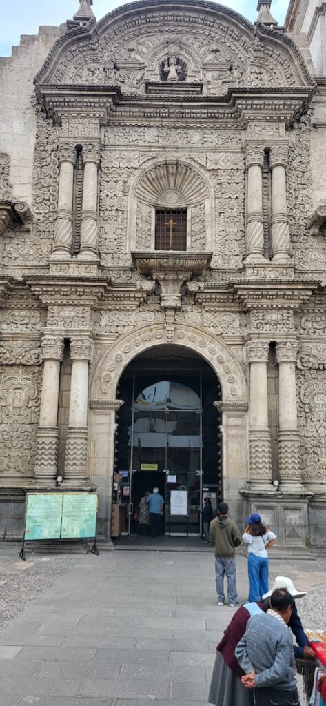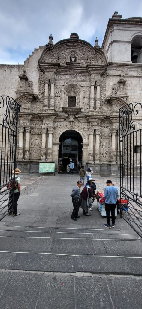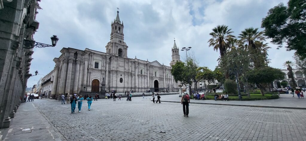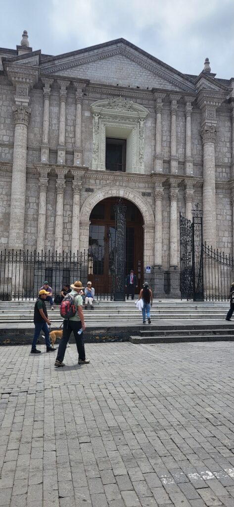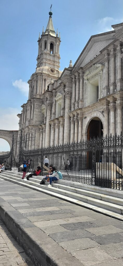 Kurz vor der Mittagszeit spazieren wir in die Altstadt. Da es wieder einmal Sonntag ist, wenn wir eine Stadt besuchen, sind die Strassen beinahe leergefegt. Es hat aber auch einen grossen Nachteil. Die Kathedrale kann nicht besucht werden, wegen der Messe und danach wird die Kirche abgeschlossen. Besuchszeit ist wieder am Montag. Sie ist, wie einige Gebäude in der Altstadt, aus weissem Vulkangestein gebaut.