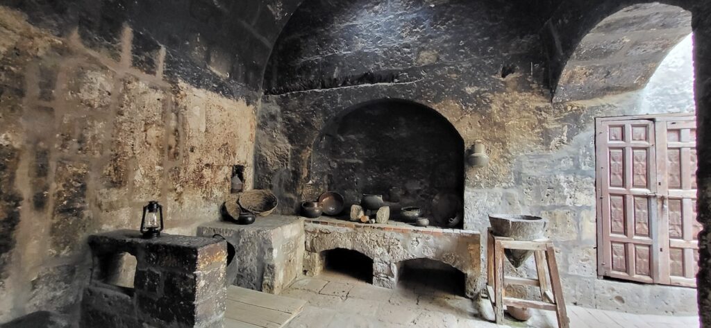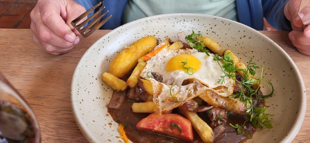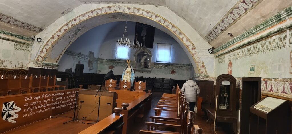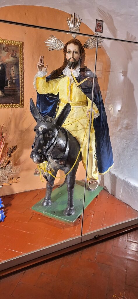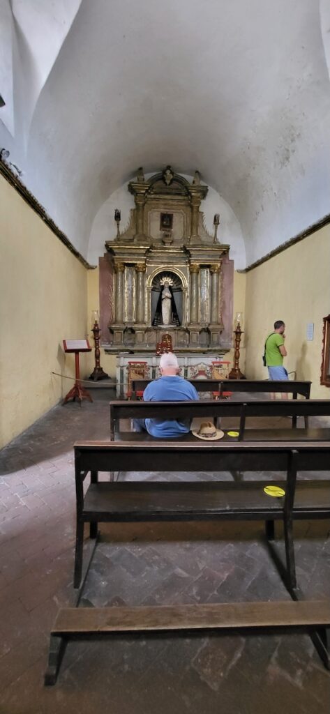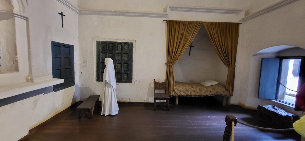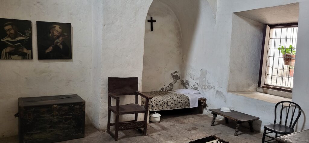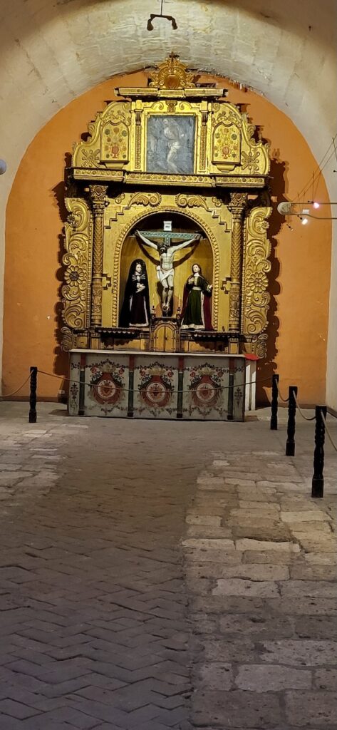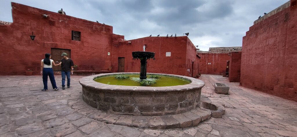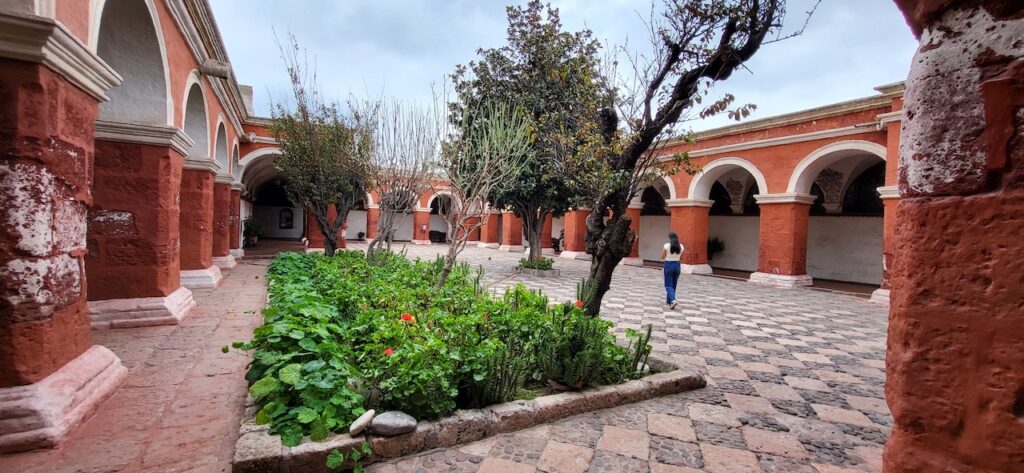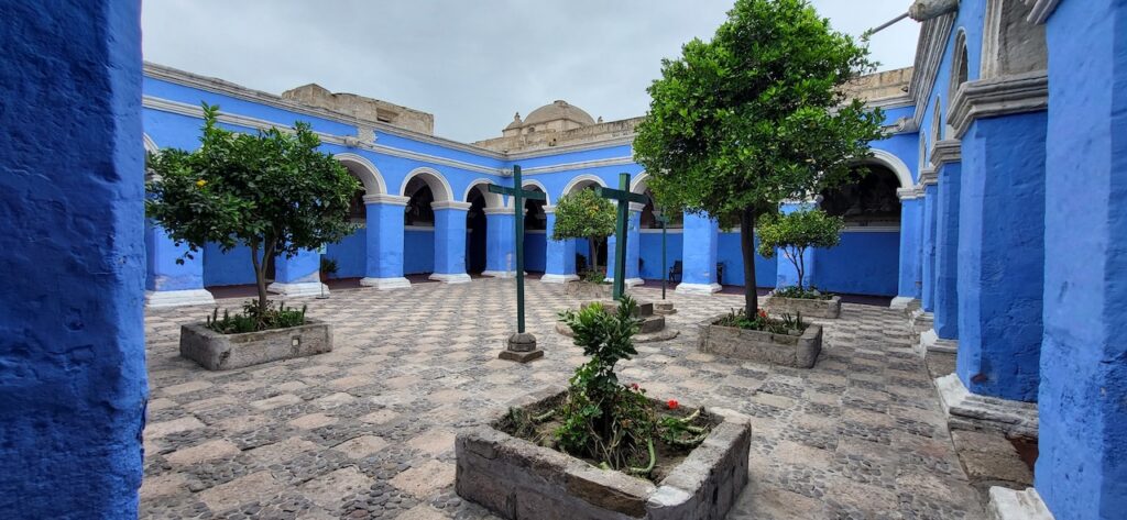 Wir suchen uns ein Restaurant und versuchen das Fleisch von Alpaka. Es ist sehr zart. Danach machen wir einen Verdauungsspaziergang zum Kloster Santa Catalina aus dem 16. Jhd. 350 Jahre war das Kloster geschlossen, bevor es wieder für die Öffentlichkeit zugänglich gemacht wurde. Es ist beeindruckend! Die Nonnen lebten nicht wie bei uns in kleinen Zellen, sondern in Wohnungen oder Häuschen. Sie beinhalteten ein Zimmer mit Bettnische und einem Altar auf der anderen Seite des Bettes, ein Wohn/Esszimmer und eine Kochstelle im eigenen Aussenbereich. Meist waren hier Mädchen von reichen Leuten zur Erziehung untergebracht. Das generierte natürlich Geld für das Kloster. Dazu waren die Nonnen berühmt für ihr Brot und süsses Gebäck. Man kann die verschiedenen Wohnungen ansehen. Auch die Innenhöfe, die Backstube, diverse Gebetsräume und eine Art Museum. Es ist sehr weitläufig.