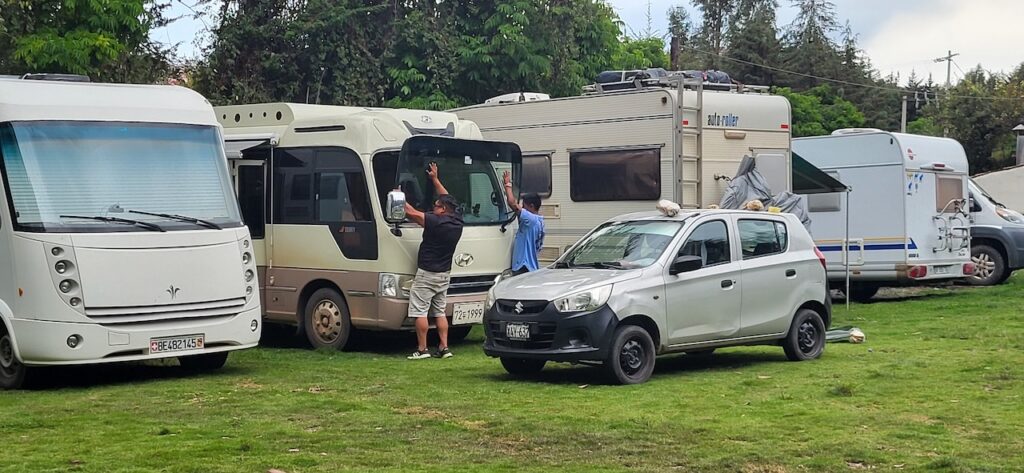 Wir trafen hier ein Paar aus Biel. Sie haben von Veracruz nach Cartagena verschifft (Wegen schlechten Nachrichten)und sind durch Kolumbien und Ecuador gefahren. Ecuador sei schön und die Menschen sehr nett. Zu vermeiden ist die Küste und die grenznahen Gebiete zu Kolumbien und Peru. Also nach der Grenze in der Mitte des Landes bleiben.