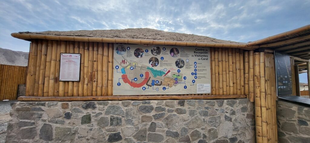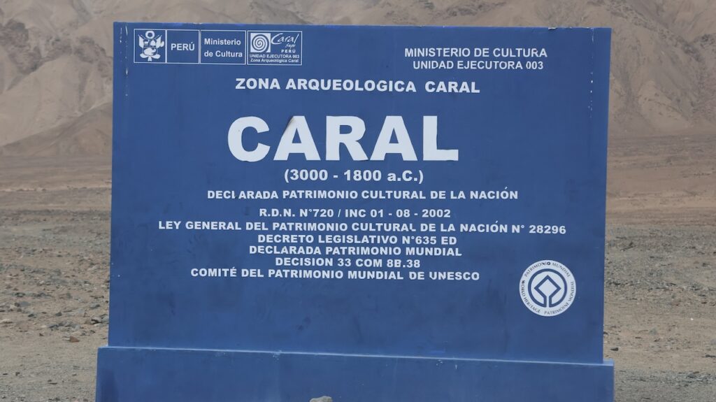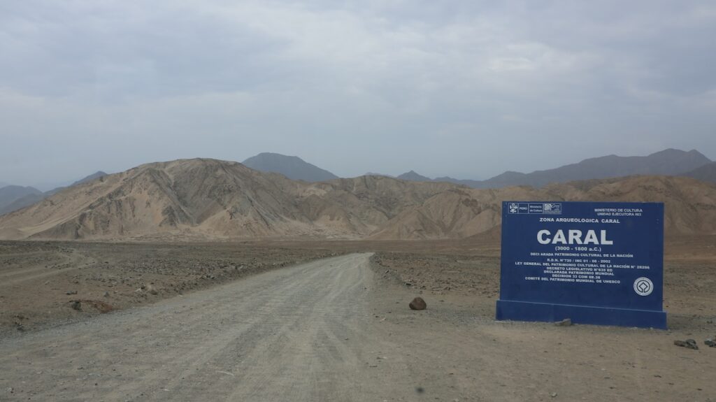 Wir erreichen Caral. Alles ist leer! Die Parkplätze und der Eingang stehen verlassen da. Es ist bis 17 Uhr geöffnet und jetzt ist es zwanzig vor. Wir sind ganz allein und alles ist offen. Die Toilette, das Infozentrum, alles offen.